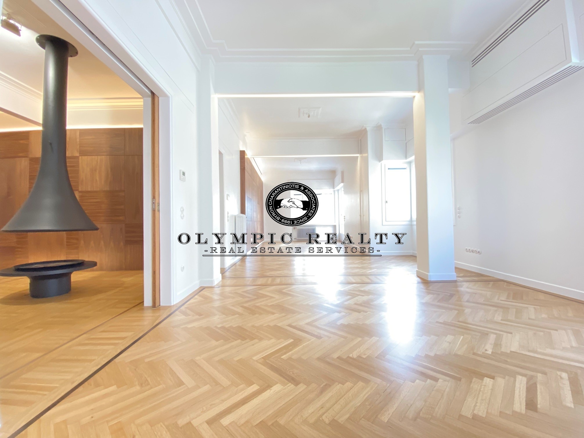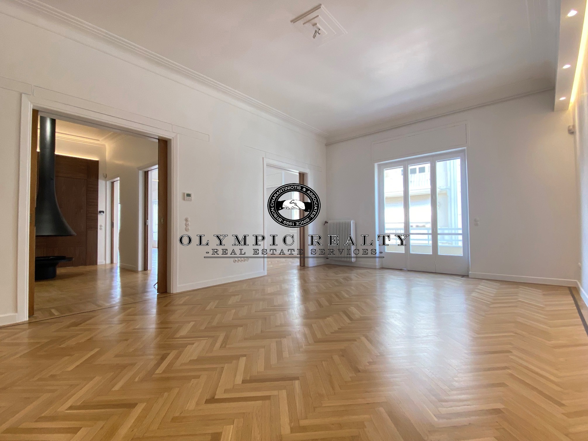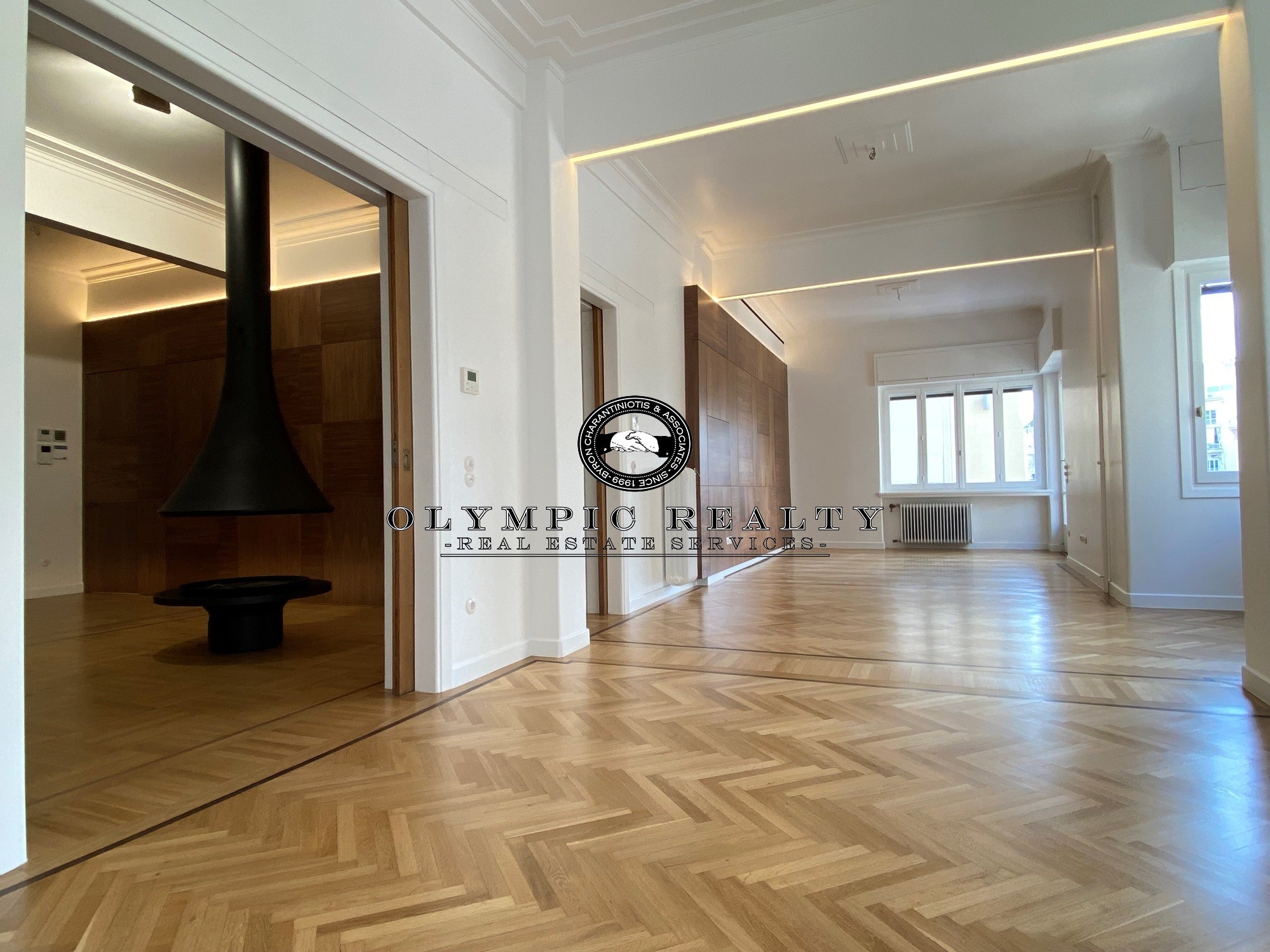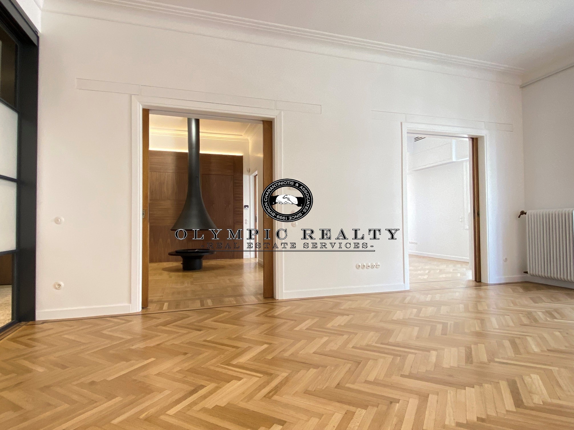 In a dominant position very near to Kolonaki Square, in an Art Deco building of the middle interwar period, with a very nice entrance, is this fully renovated apartment of 204sqm on 3rd floor. This is an apartment with excellent layout, consisting of large high-ceilinged reception areas with oak floors, semi-open plan kitchen, 2 spacious en-suite bedrooms, maid’s room, 2 bathrooms, and wc. The apartment has complete renovated and has retained elements of its original character, influenced by the Art Deco architectural style. It is equipped with autonomous gas heating, air conditioning cooling – heating Daikin escalator inverter via VRV (channels), island fireplace, built-in electrical appliances Miele, underfloor heating in the bathrooms, double glazed windows ecc. In addition, it has a basement storage and 1 car parking space inside the building. Code: 3271