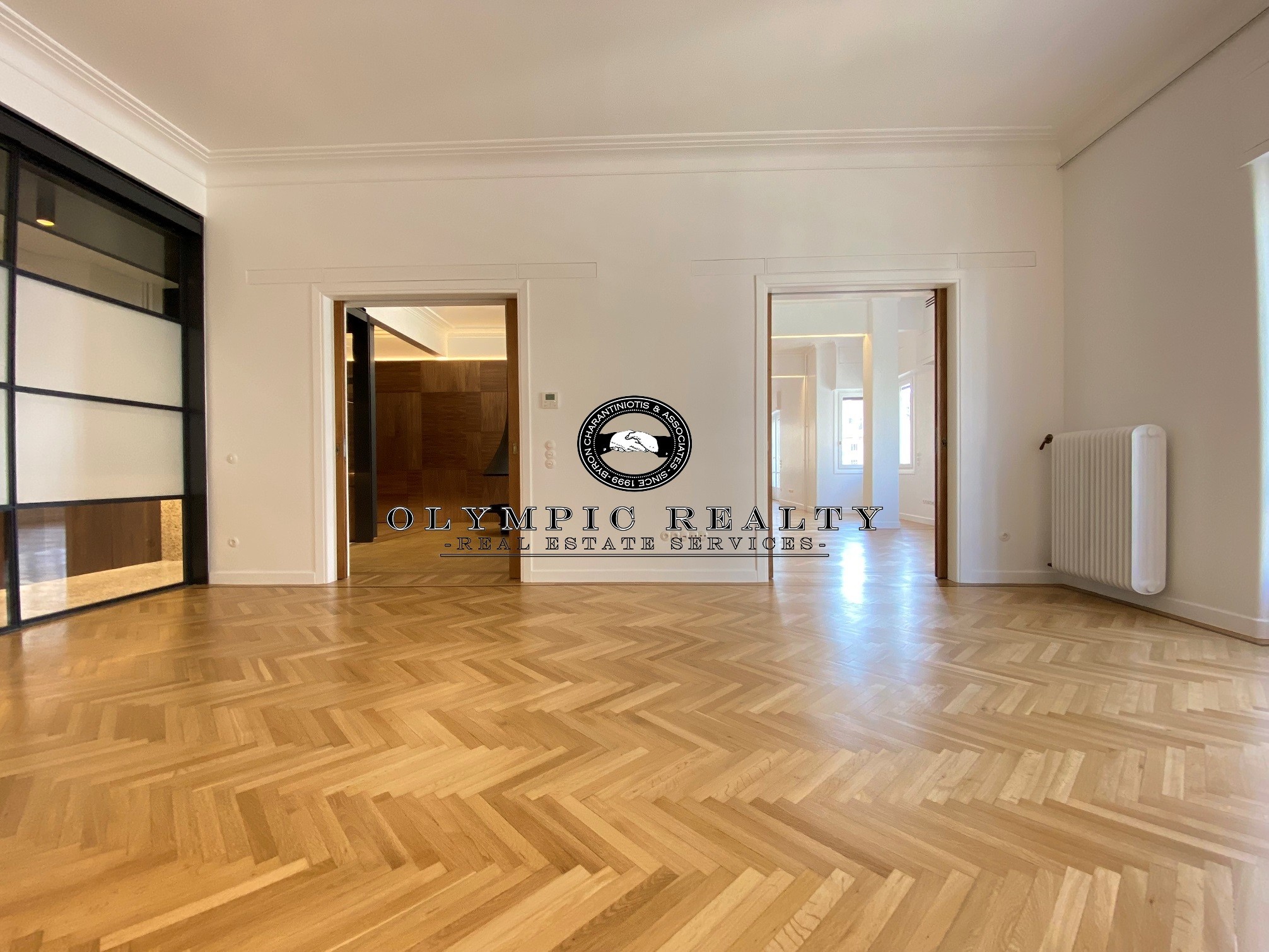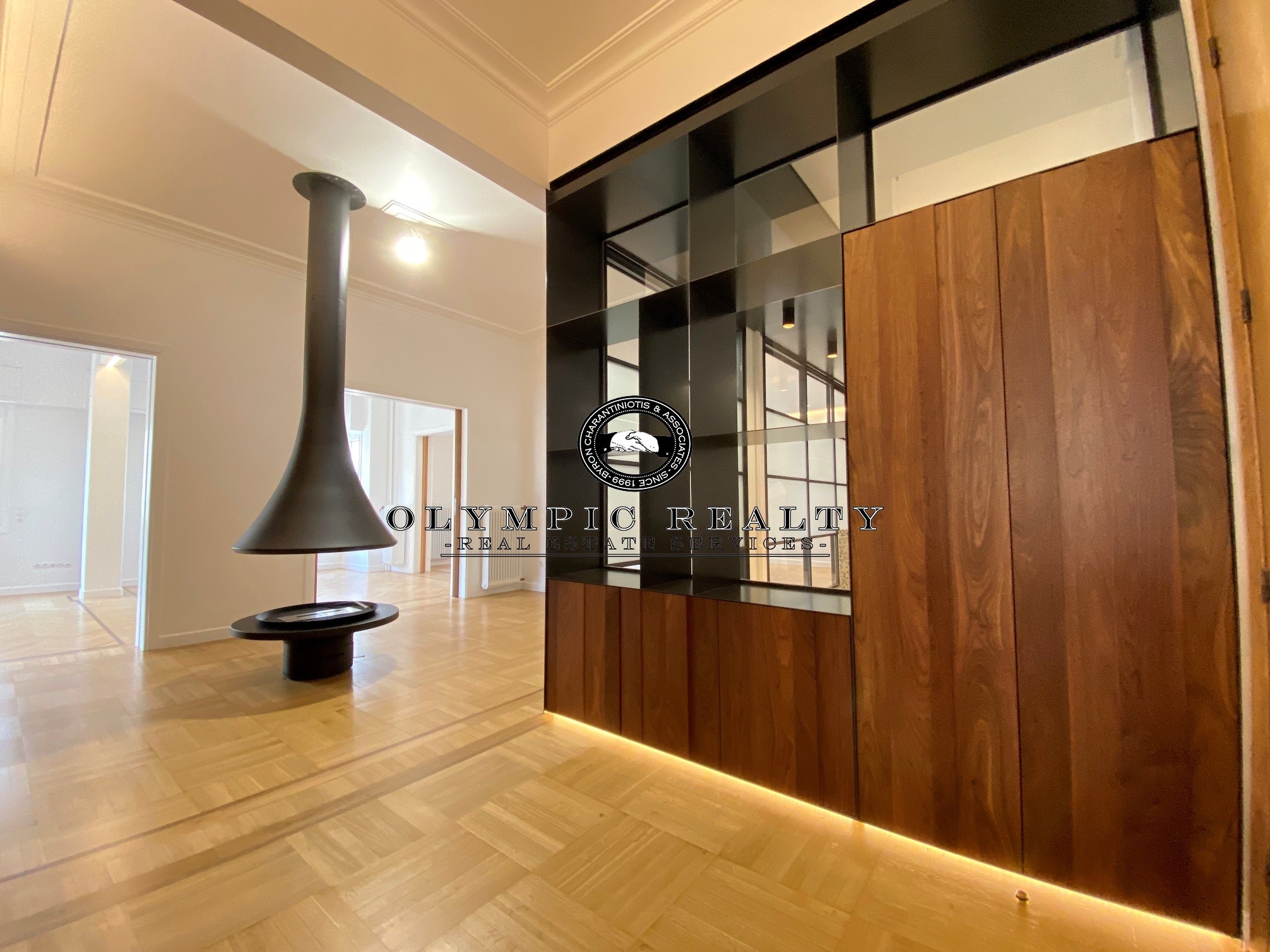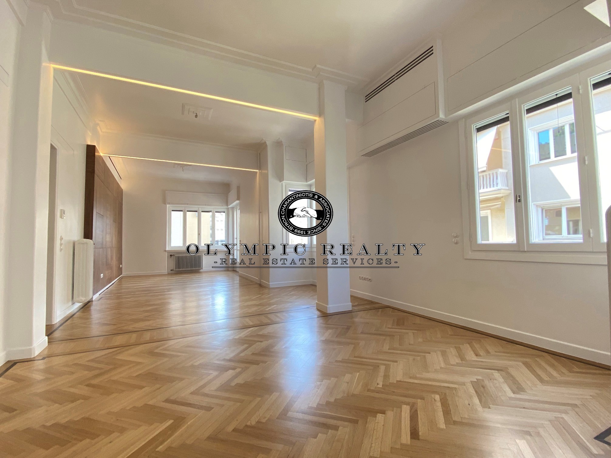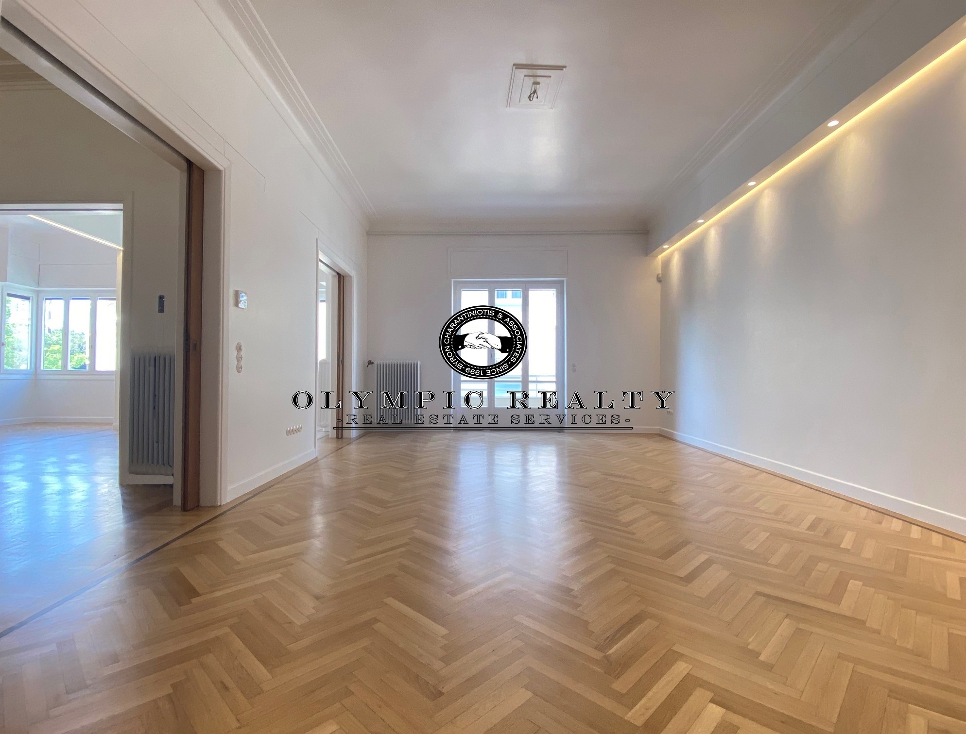 In a dominant position very near to Kolonaki Square, in an Art Deco building of the middle interwar period, with a very nice entrance, is this fully renovated apartment of 204sqm on 3rd floor. This is an apartment with excellent layout, consisting of large high-ceilinged reception areas with oak floors, semi-open plan kitchen, 2 spacious en-suite bedrooms, maid’s room, 2 bathrooms, and wc. The apartment has complete renovated and has retained elements of its original character, influenced by the Art Deco architectural style. It is equipped with autonomous gas heating, air conditioning cooling – heating Daikin escalator inverter via VRV (channels), island fireplace, built-in electrical appliances Miele, underfloor heating in the bathrooms, double glazed windows ecc. In addition, it has a basement storage and 1 car parking space inside the building. Code: 3271