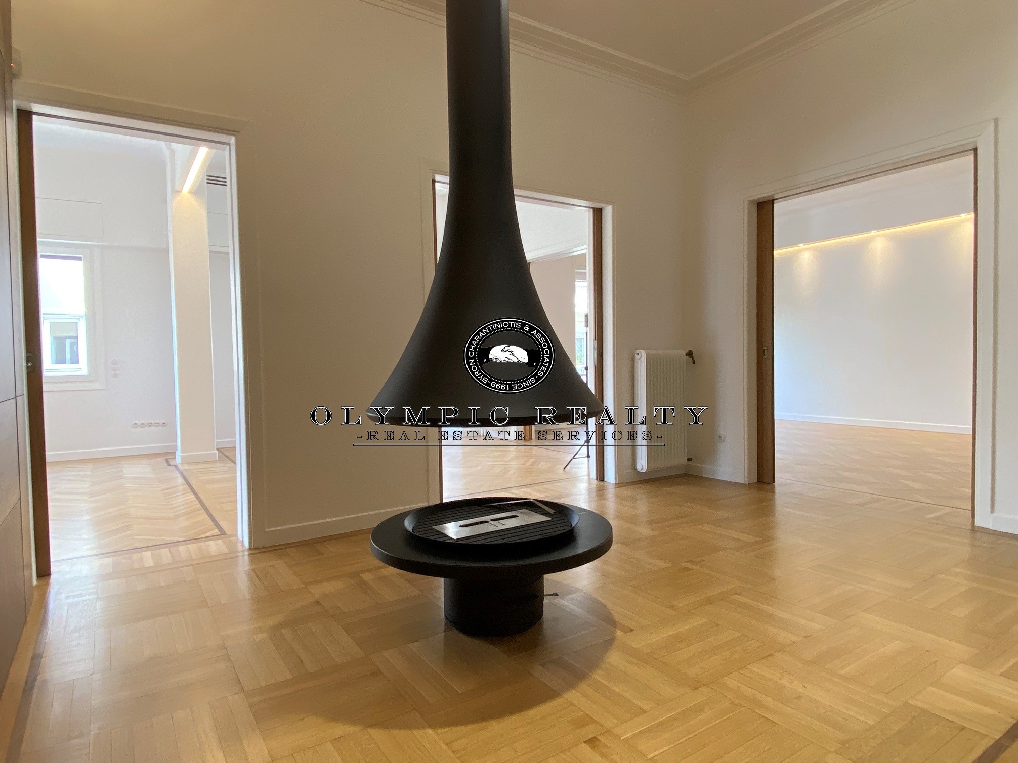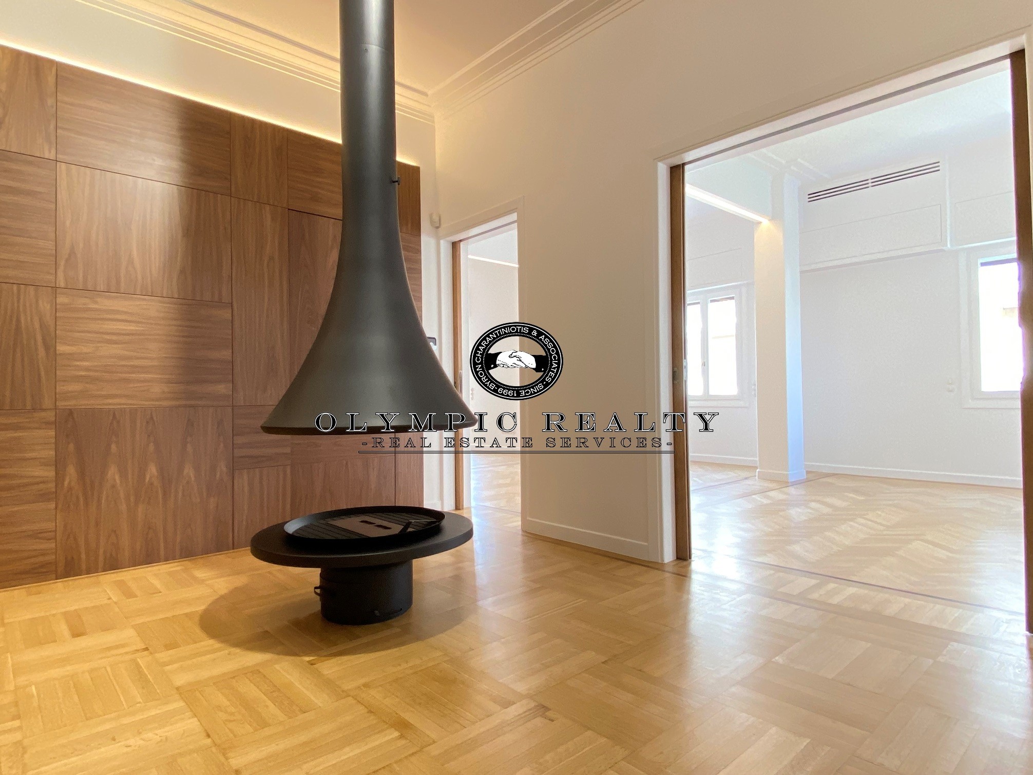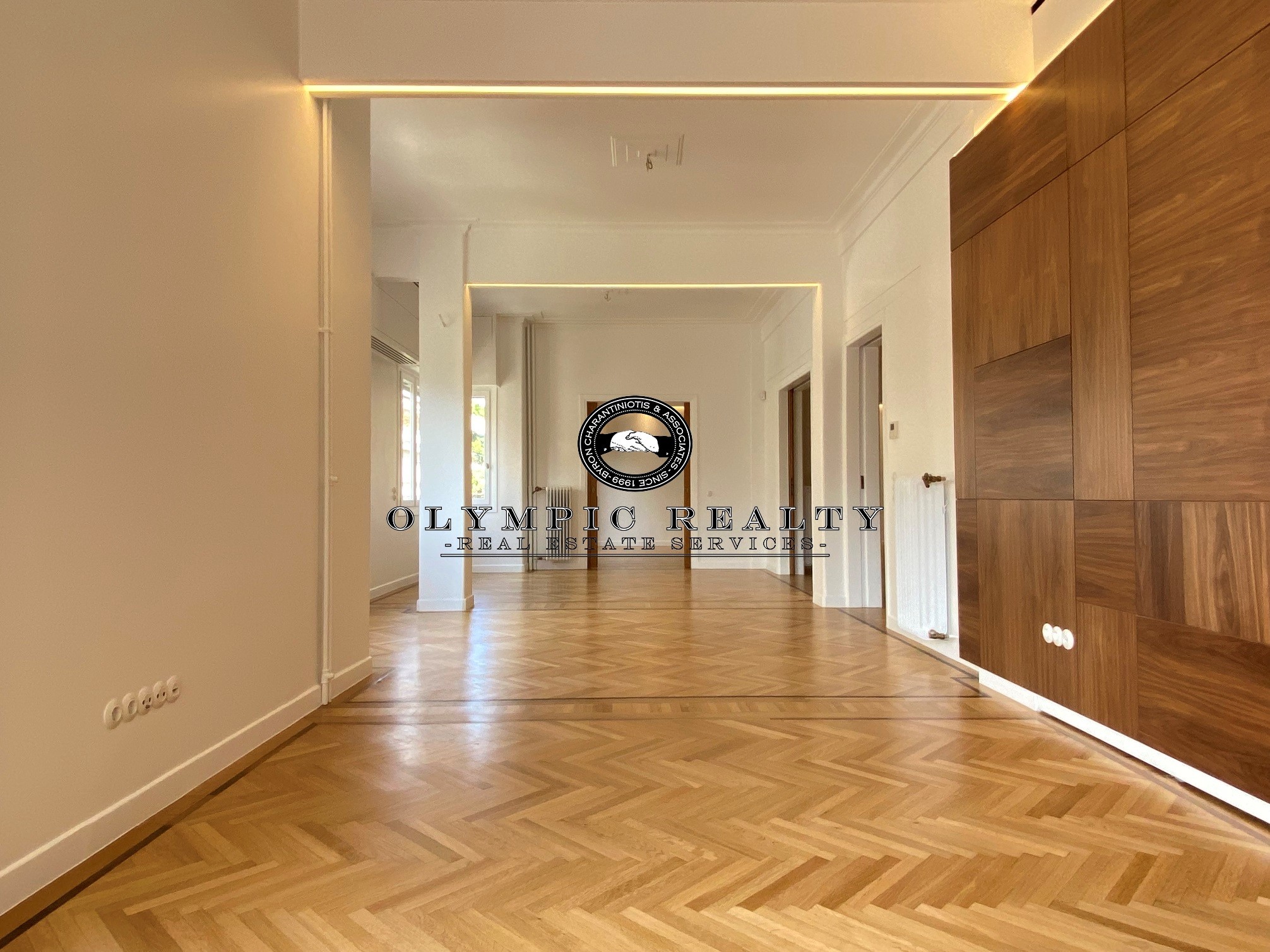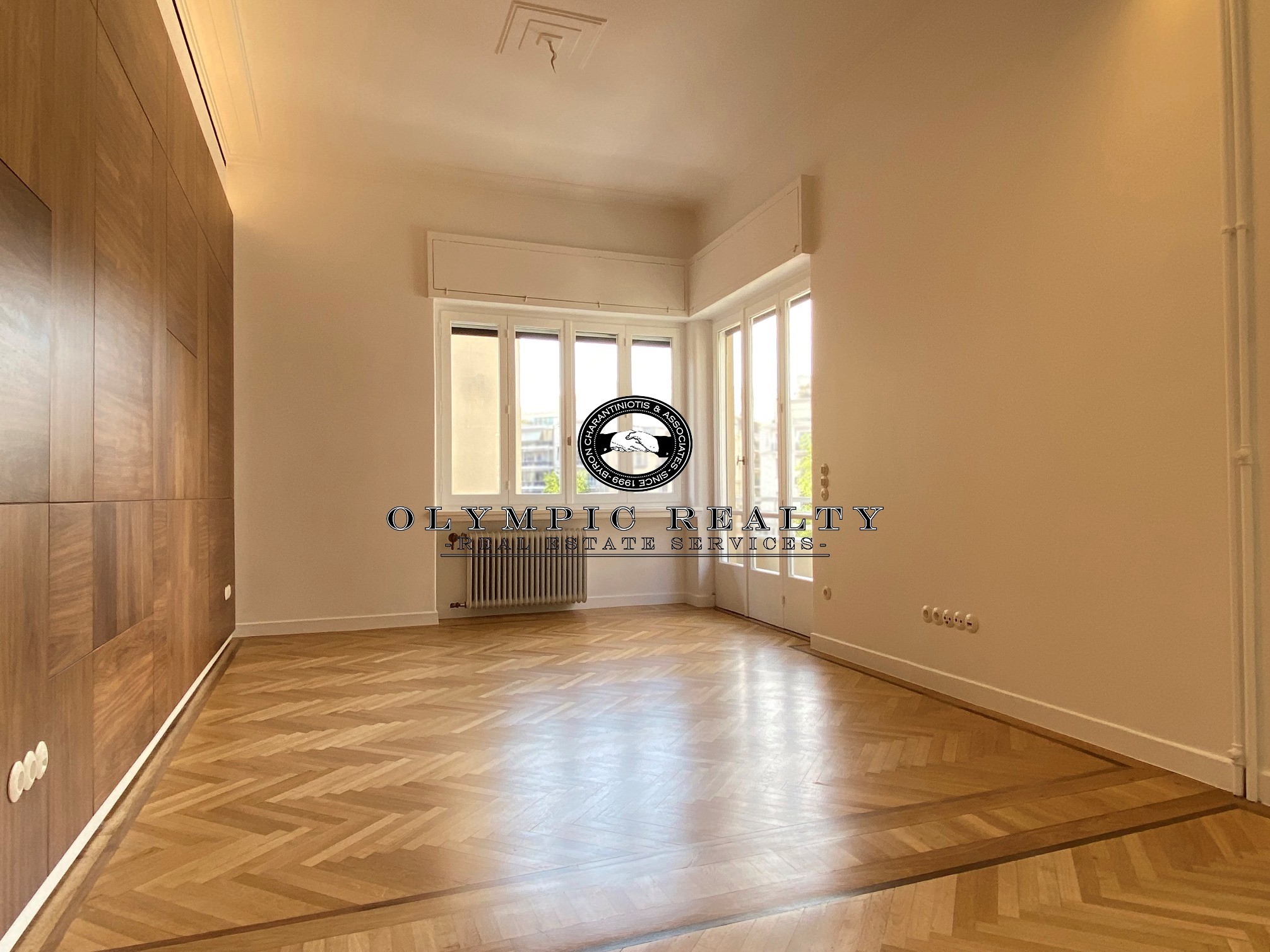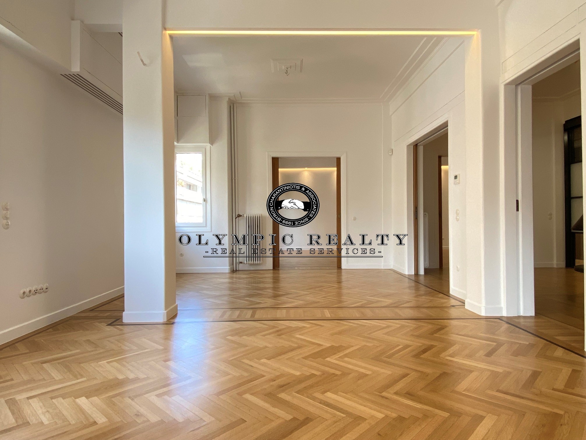 In a dominant position very near to Kolonaki Square, in an Art Deco building of the middle interwar period, with a very nice entrance, is this fully renovated apartment of 204sqm on 3rd floor. This is an apartment with excellent layout, consisting of large high-ceilinged reception areas with oak floors, semi-open plan kitchen, 2 spacious en-suite bedrooms, maid’s room, 2 bathrooms, and wc. The apartment has complete renovated and has retained elements of its original character, influenced by the Art Deco architectural style. It is equipped with autonomous gas heating, air conditioning cooling – heating Daikin escalator inverter via VRV (channels), island fireplace, built-in electrical appliances Miele, underfloor heating in the bathrooms, double glazed windows ecc. In addition, it has a basement storage and 1 car parking space inside the building. Code: 3271