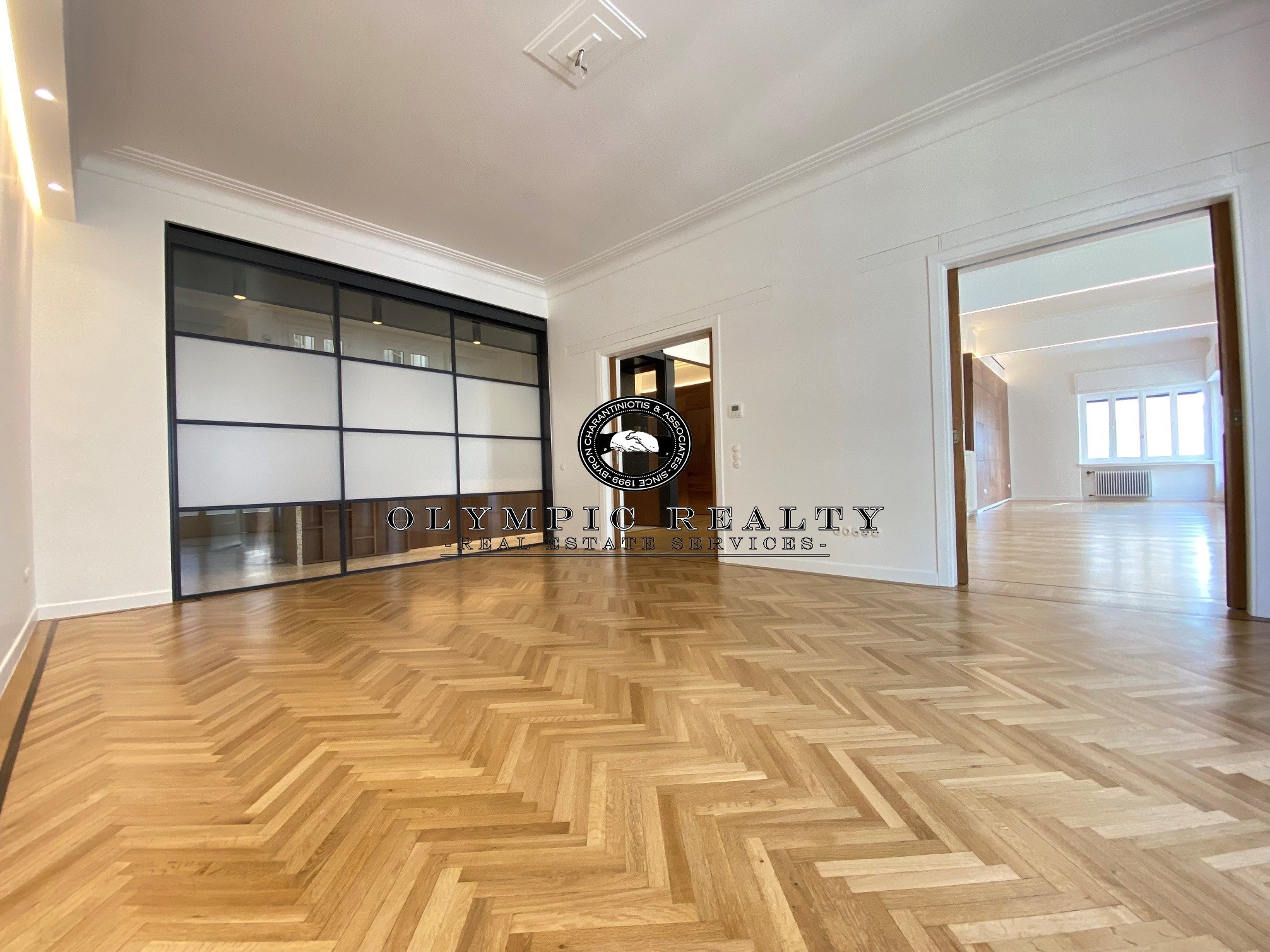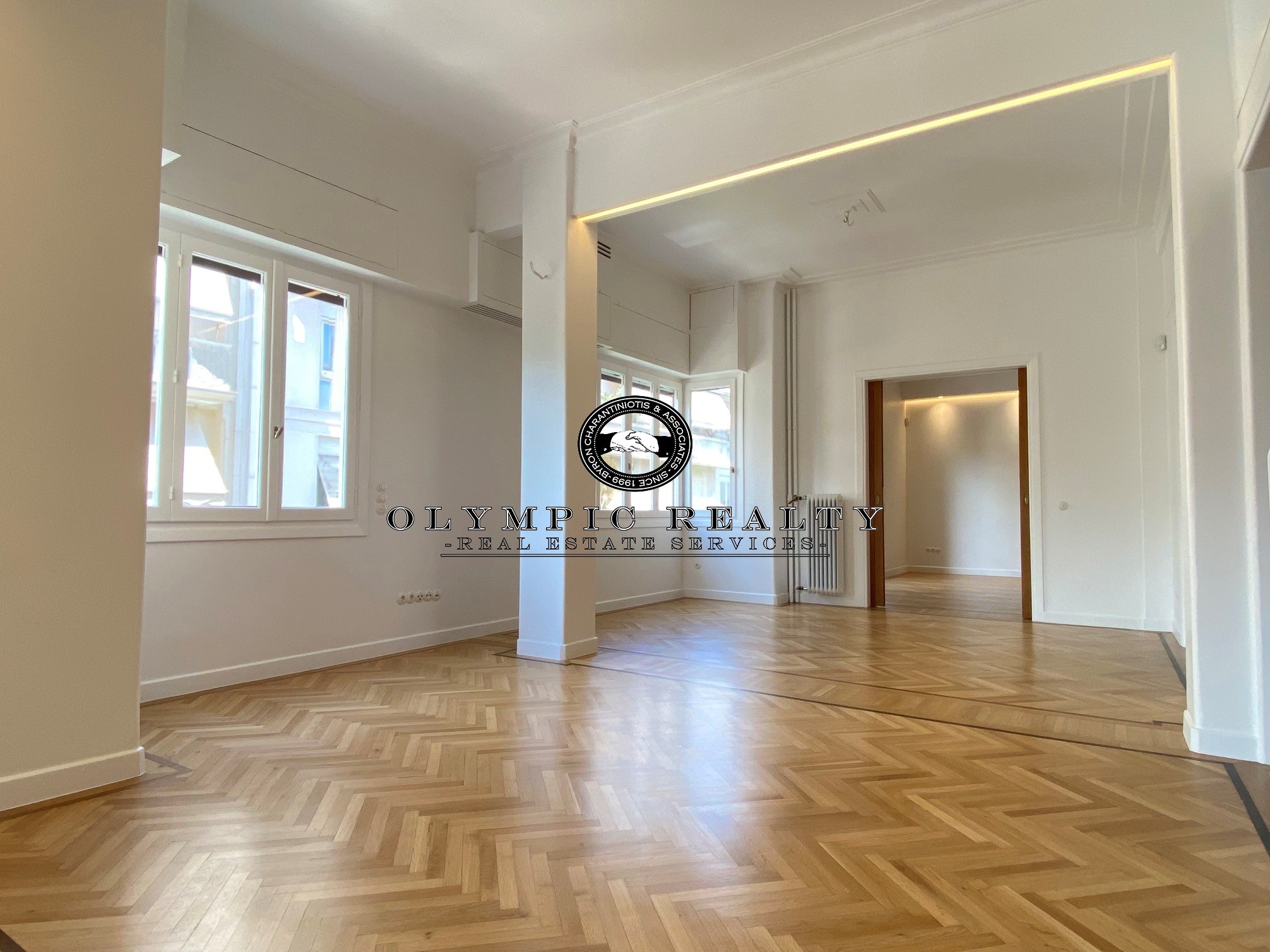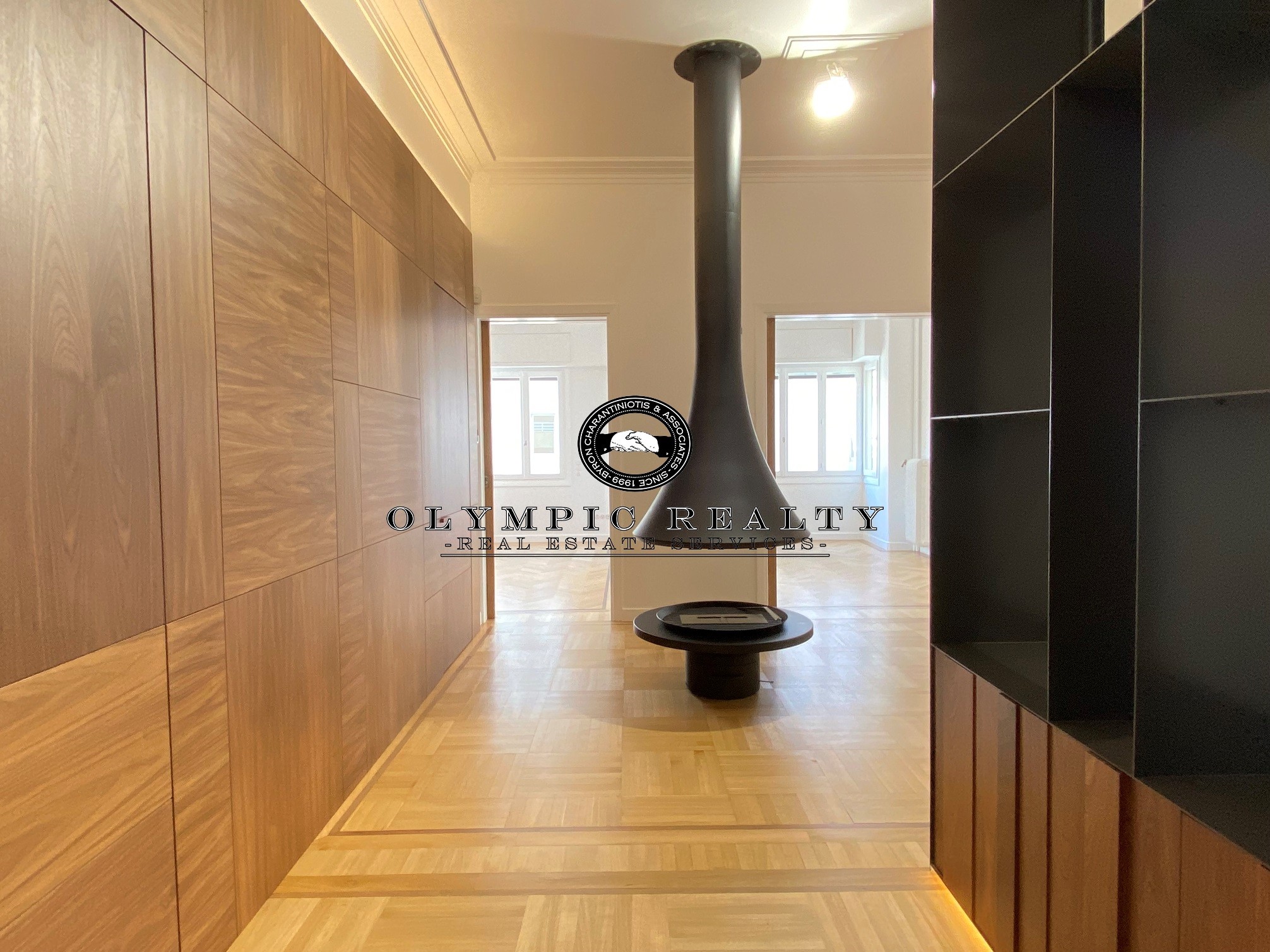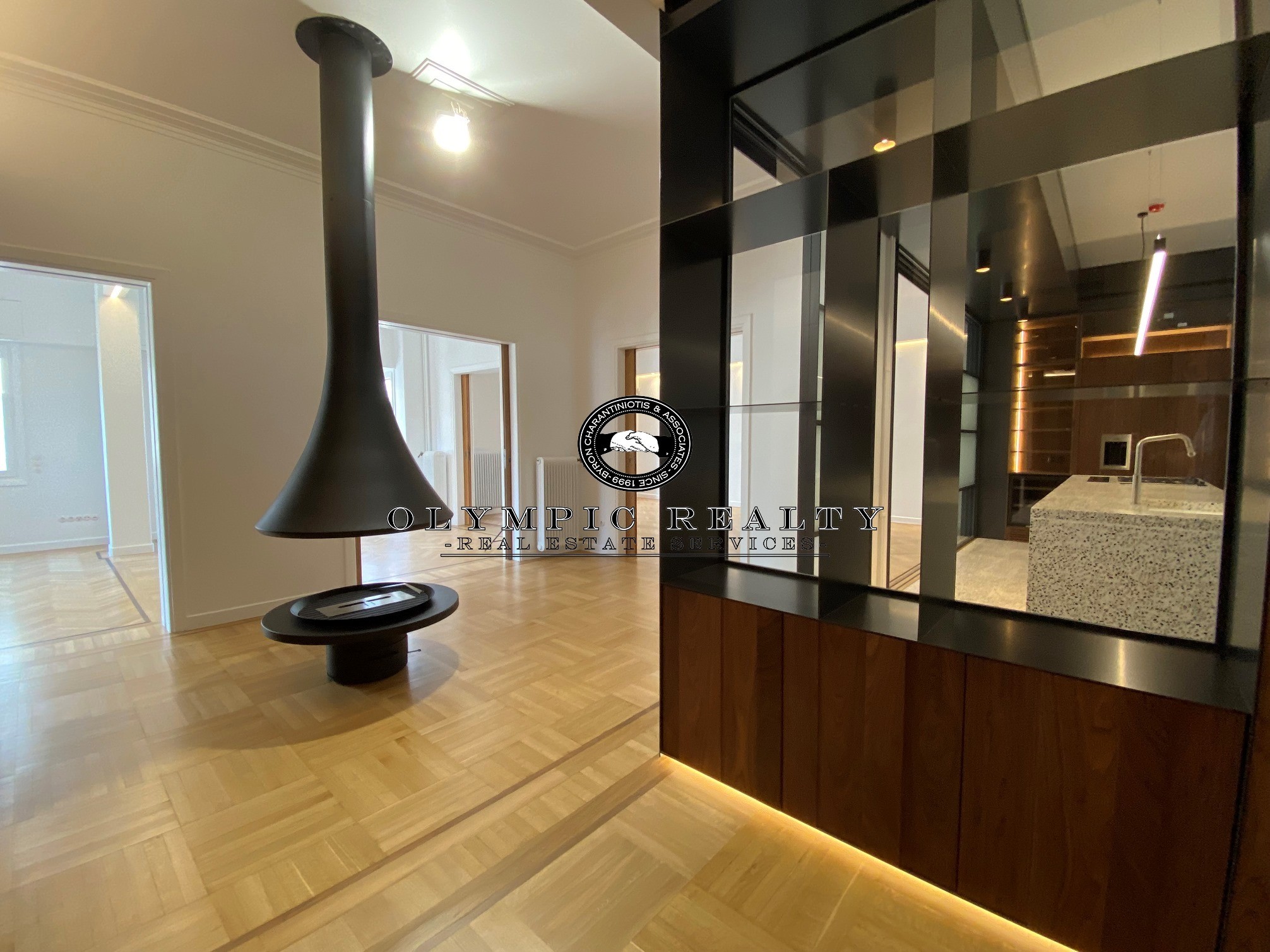 In a dominant position very near to Kolonaki Square, in an Art Deco building of the middle interwar period, with a very nice entrance, is this fully renovated apartment of 204sqm on 3rd floor. This is an apartment with excellent layout, consisting of large high-ceilinged reception areas with oak floors, semi-open plan kitchen, 2 spacious en-suite bedrooms, maid’s room, 2 bathrooms, and wc. The apartment has complete renovated and has retained elements of its original character, influenced by the Art Deco architectural style. It is equipped with autonomous gas heating, air conditioning cooling – heating Daikin escalator inverter via VRV (channels), island fireplace, built-in electrical appliances Miele, underfloor heating in the bathrooms, double glazed windows ecc. In addition, it has a basement storage and 1 car parking space inside the building. Code: 3271
