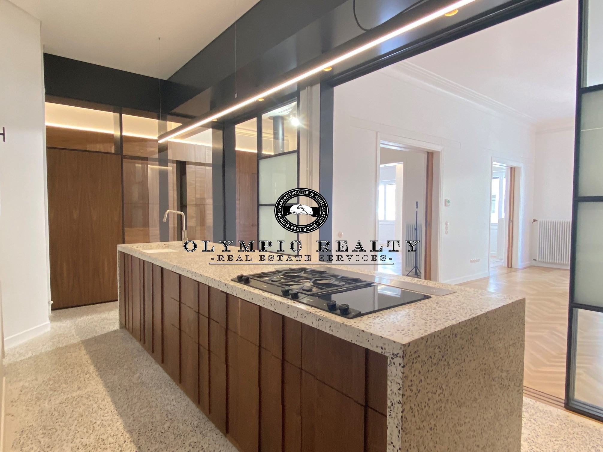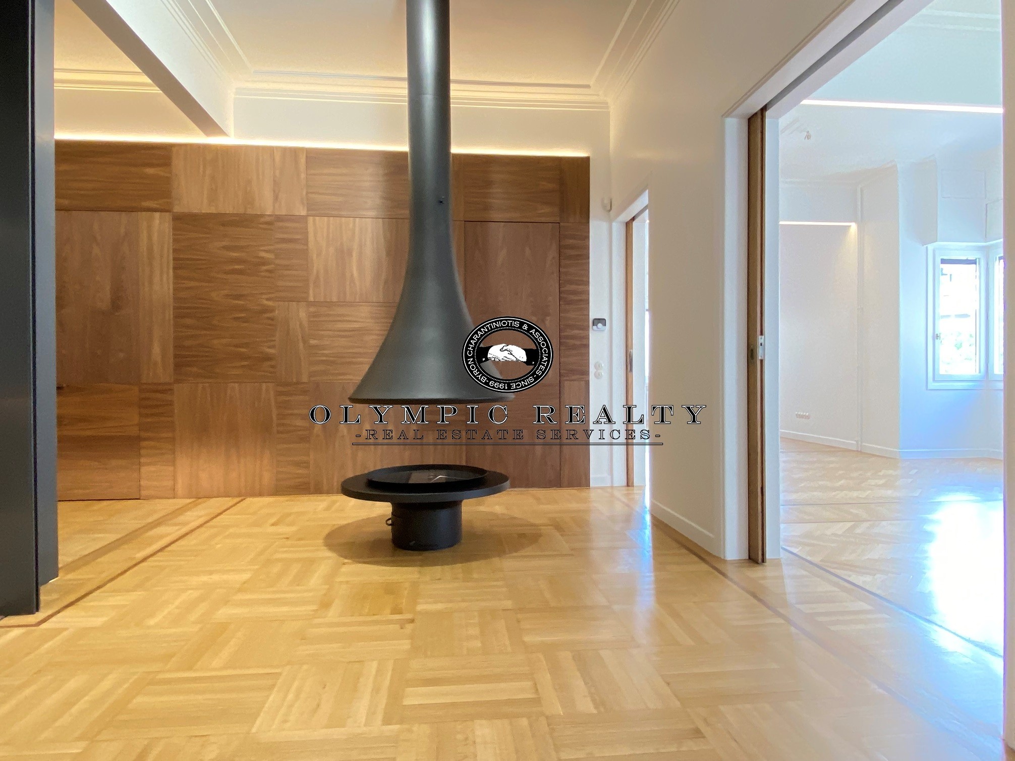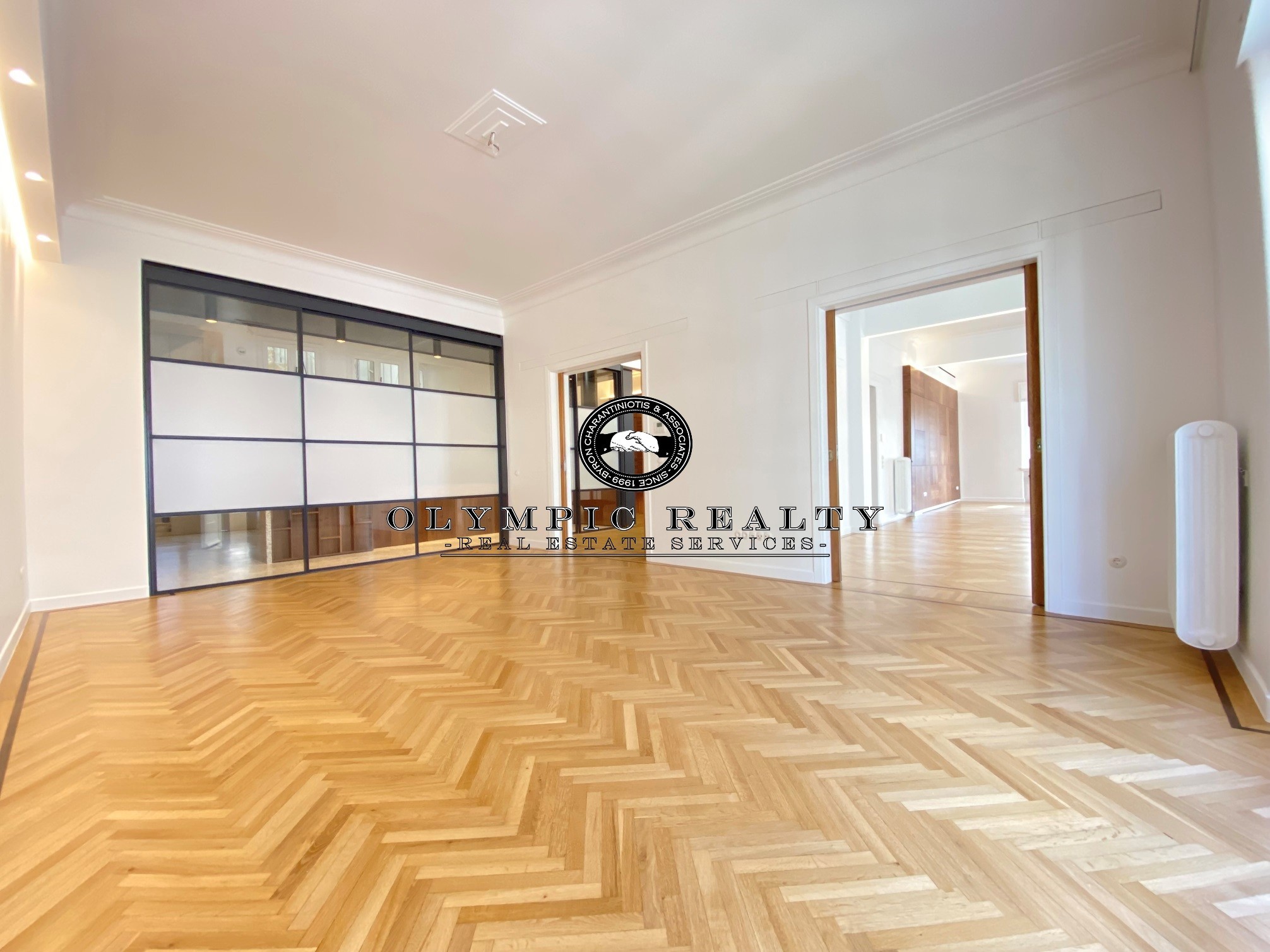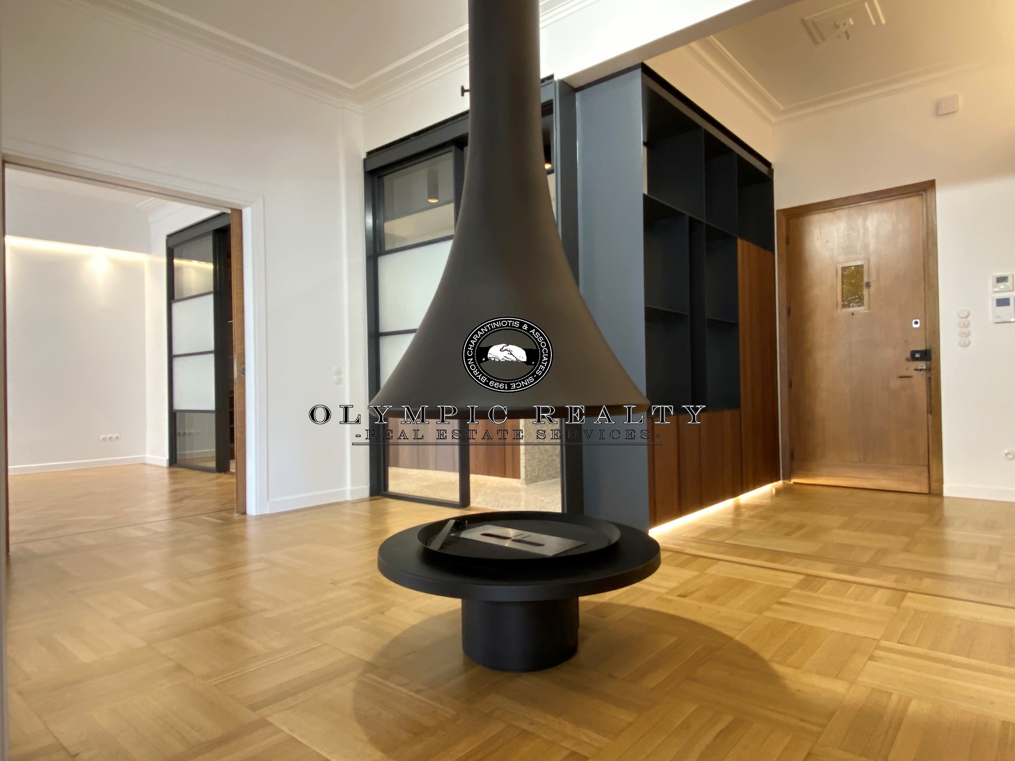In a dominant position very near to Kolonaki Square, in an Art Deco building of the middle interwar period, with a very nice entrance, is this fully renovated apartment of 204sqm on 3rd floor. This is an apartment with excellent layout, consisting of large high-ceilinged reception areas with oak floors, semi-open plan kitchen, 2 spacious en-suite bedrooms, maid’s room, 2 bathrooms, and wc. The apartment has complete renovated and has retained elements of its original character, influenced by the Art Deco architectural style. It is equipped with autonomous gas heating, air conditioning cooling – heating Daikin escalator inverter via VRV (channels), island fireplace, built-in electrical appliances Miele, underfloor heating in the bathrooms, double glazed windows ecc. In addition, it has a basement storage and 1 car parking space inside the building. Code: 3271