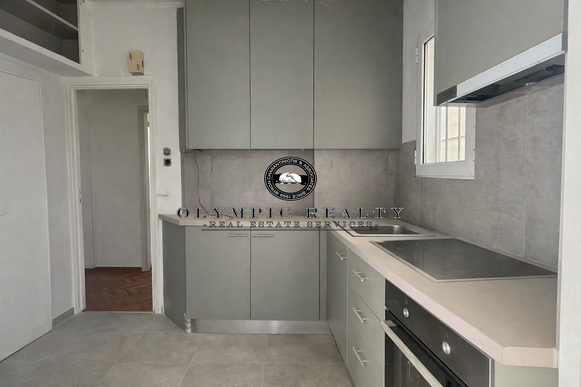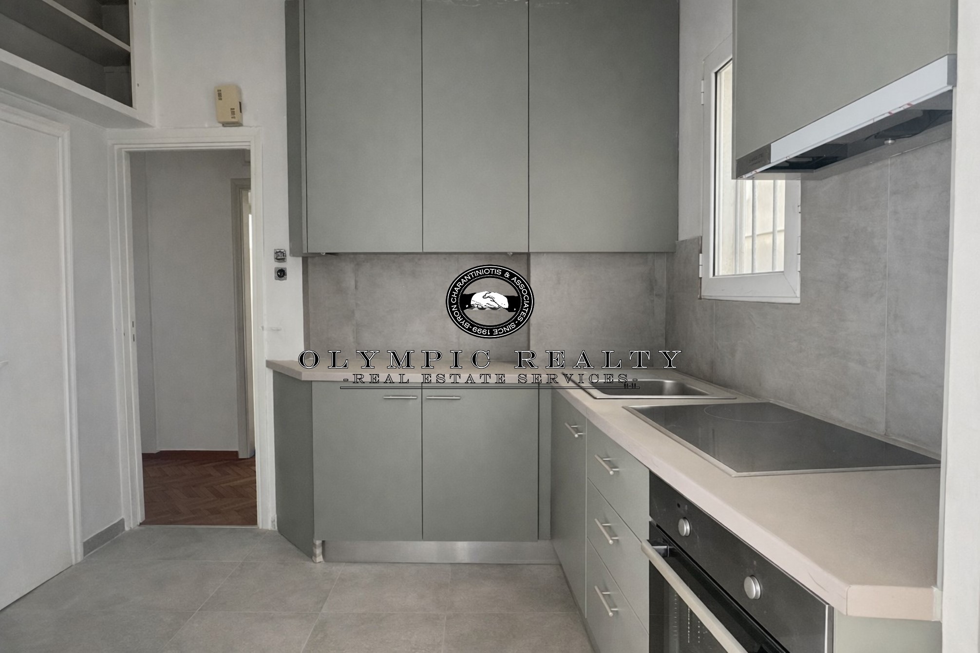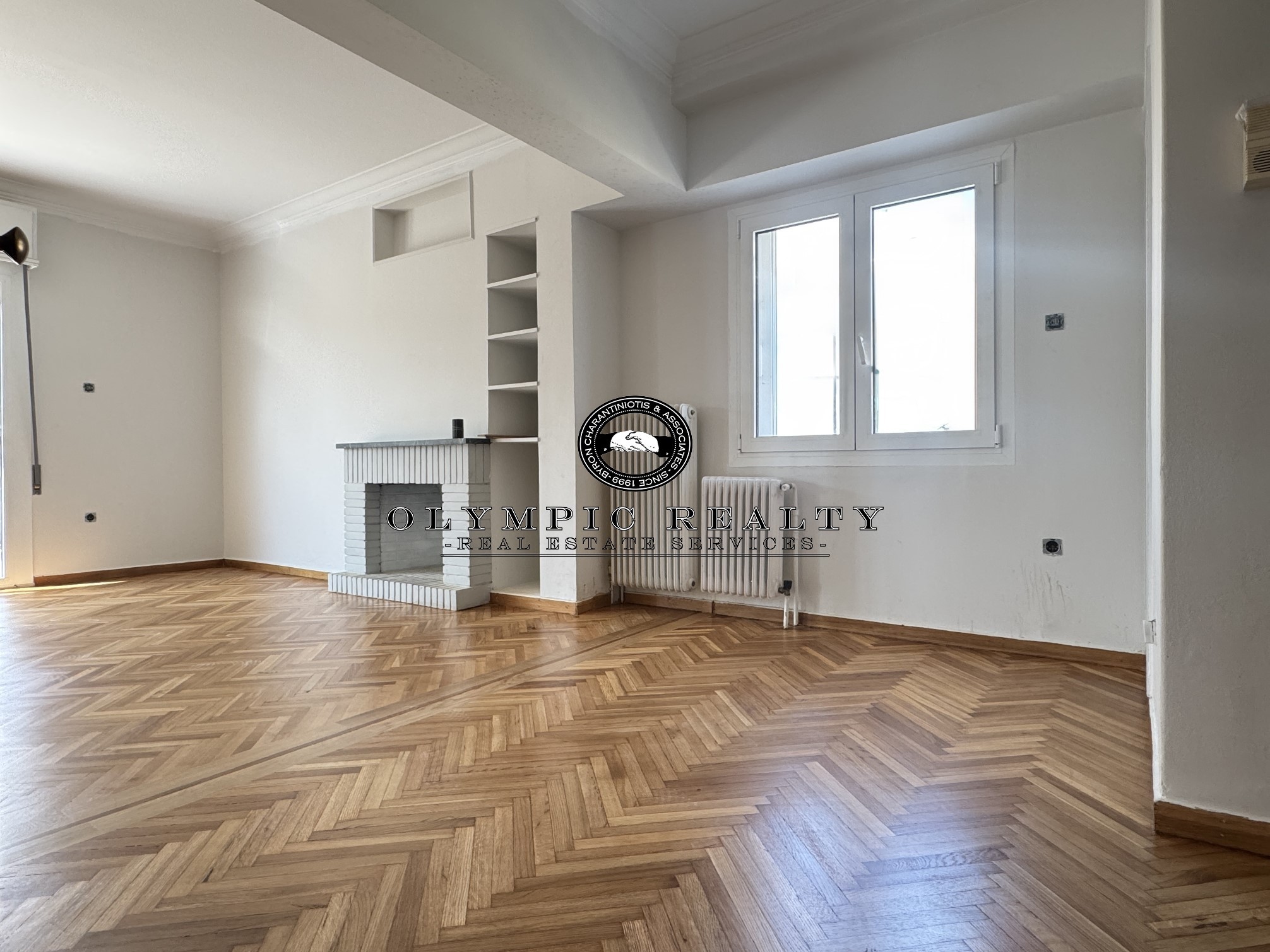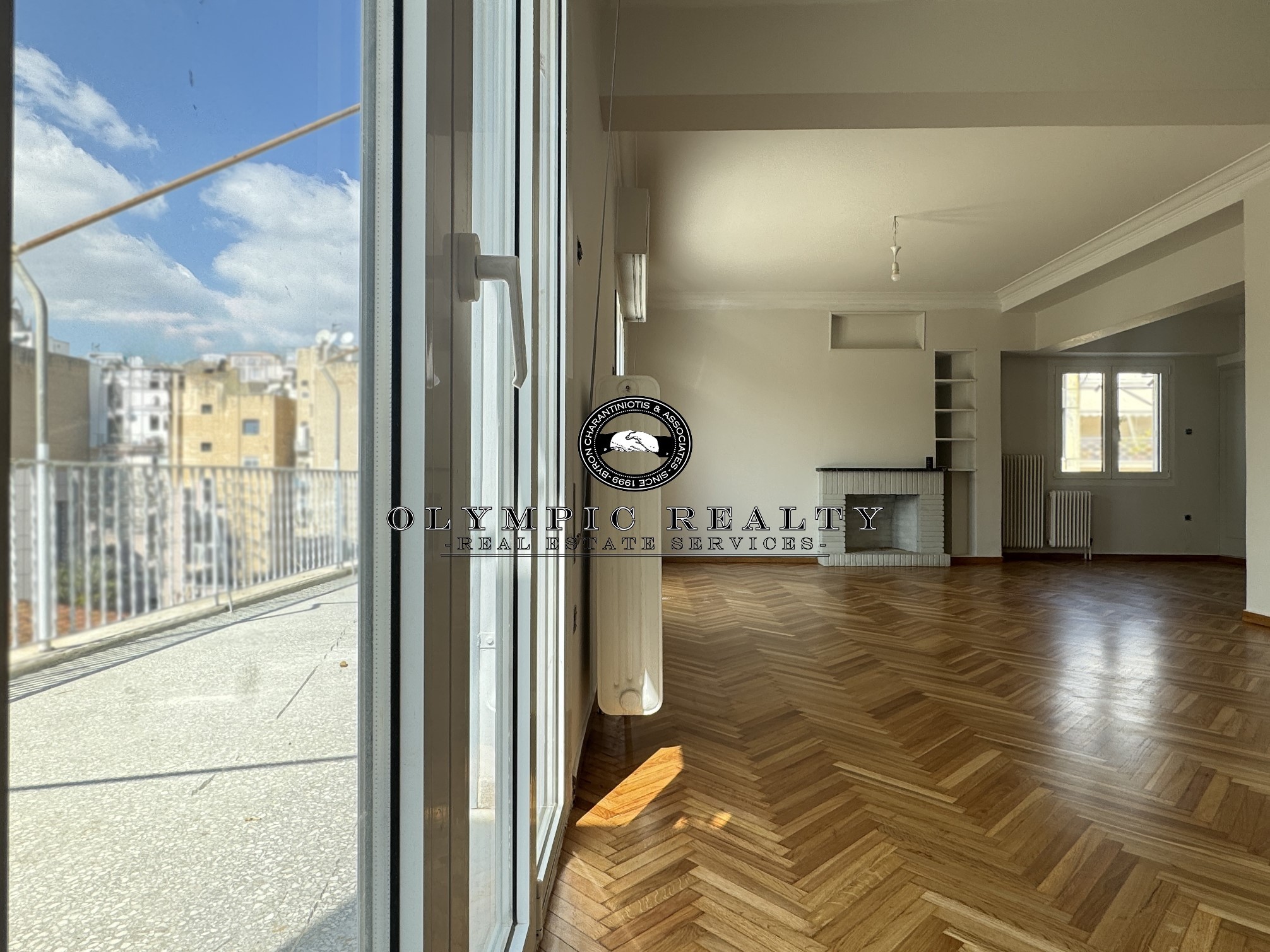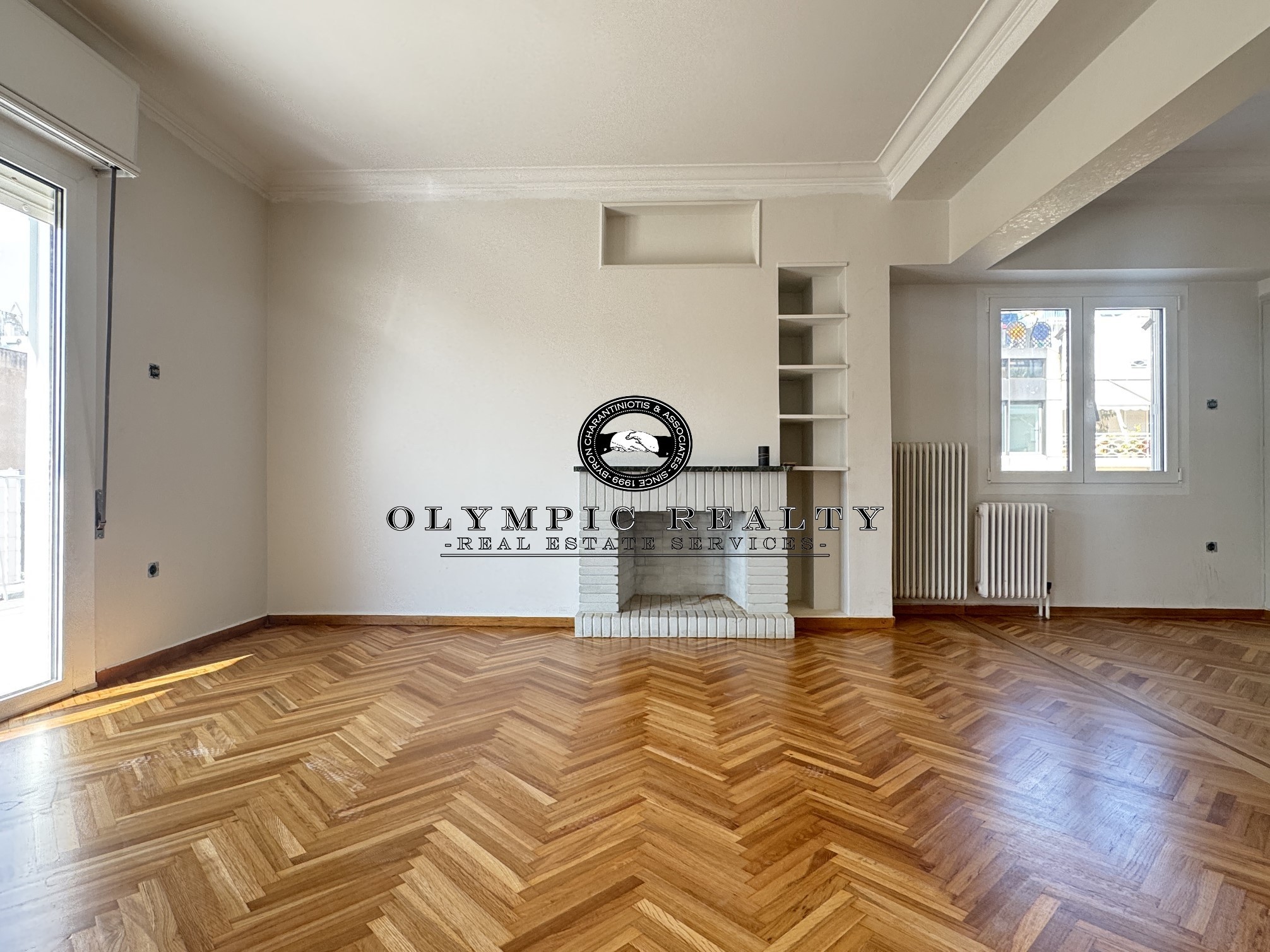 In a very good location, penthouse apartment of 110 sq.m., 6th floor, consisting of a large living room with fireplace and access to a very large terrace with awnings, renovated ergonomic independent kitchen, 2 spacious bedrooms, bathroom and wc. It has aluminum frames with double glazing, air conditioning cooling – heating in all areas, security door, etc. Renovation March 2026. Code: 3293