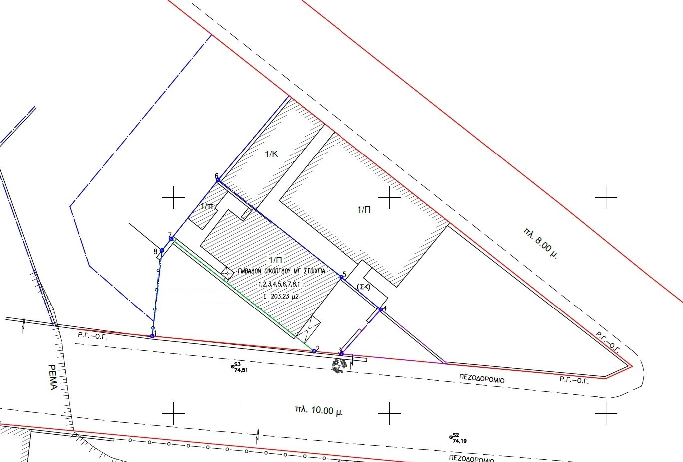 In a very good location, very close to Ergasias Street, plot of 272 sq.m., corner, plot frontage 20 m., building..