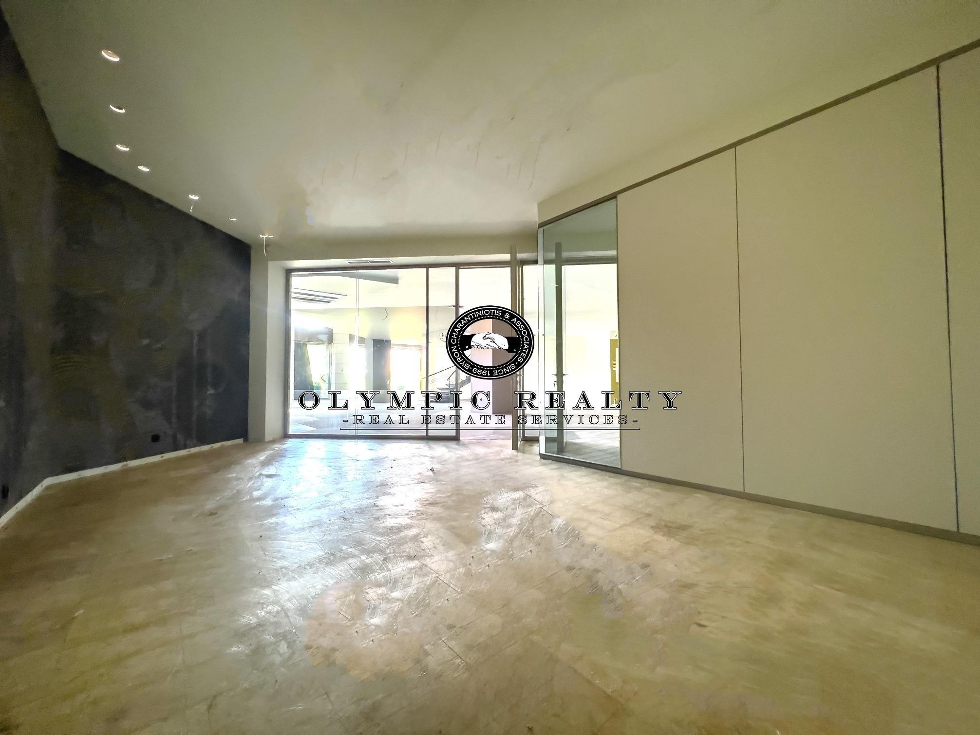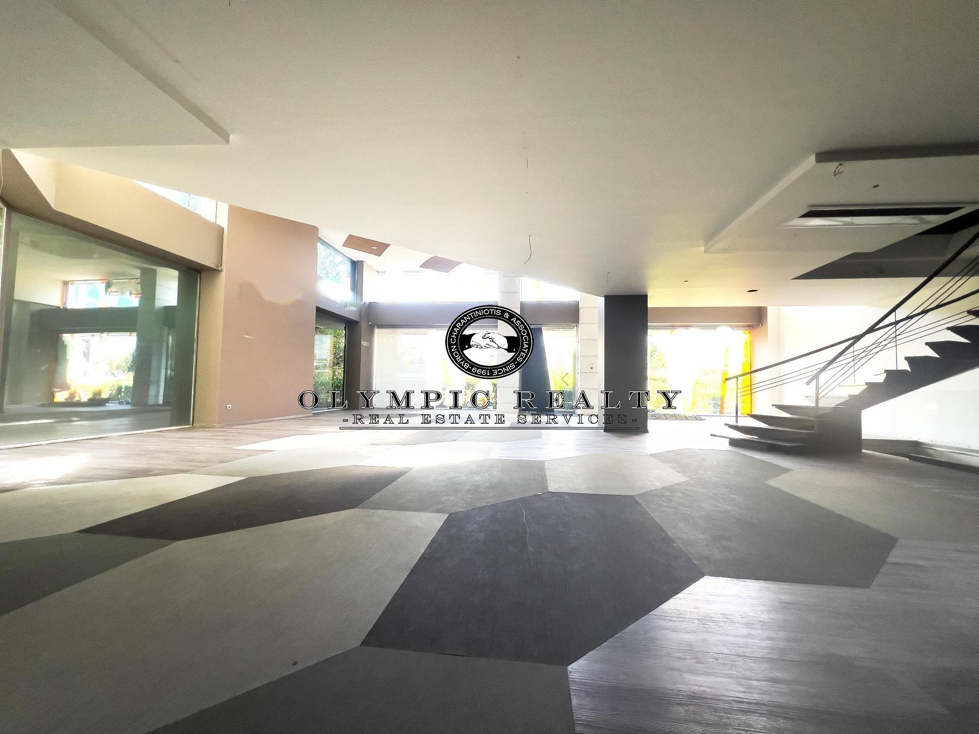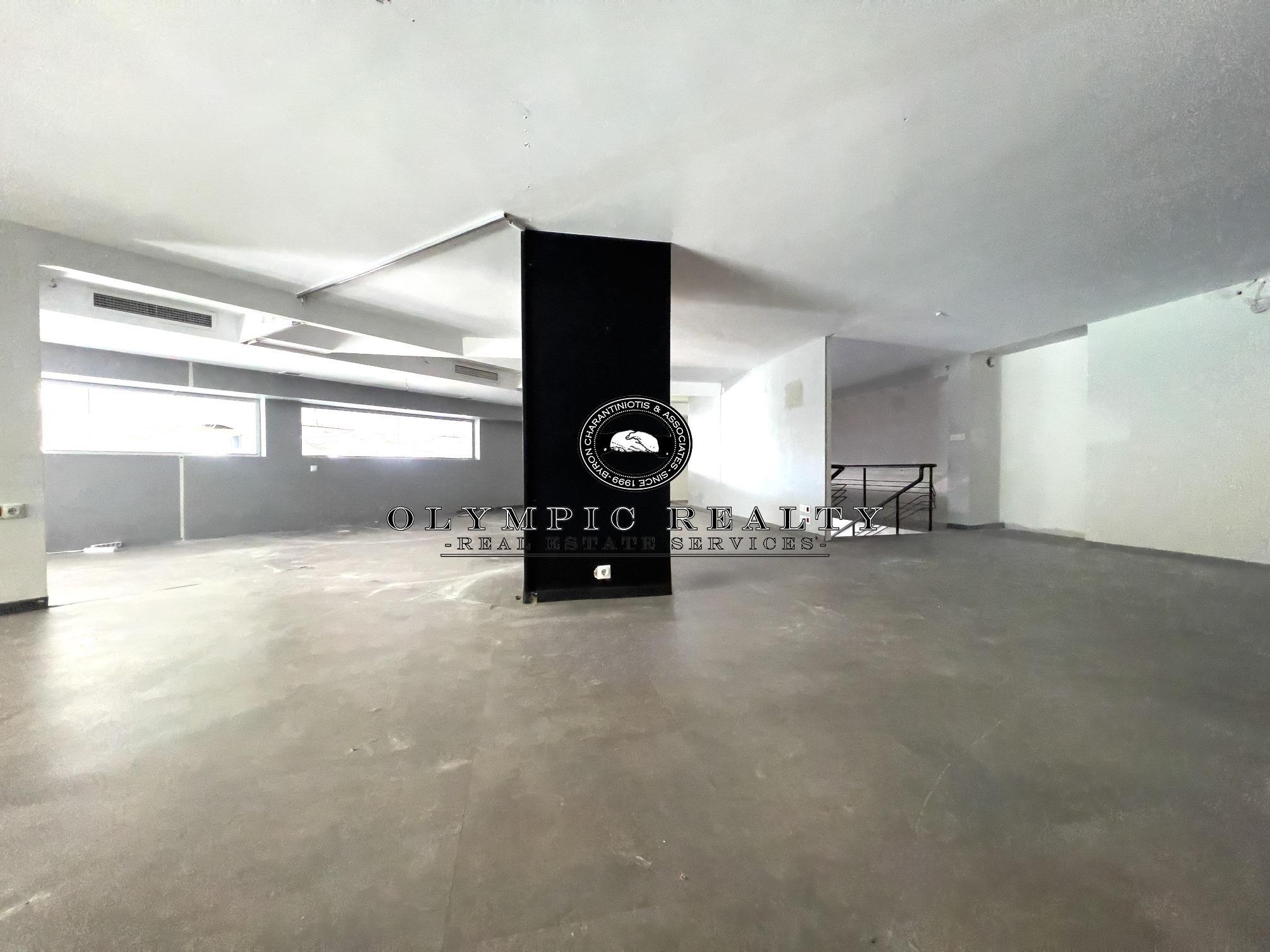 In a very good location on Kifissias Avenue, a highly visible store, of a total surface of 750 sq.m., consisting of a ground floor of 300 sq.m., a mezzanine of 150 sq.m. (main use) and a basement of 300 sq.m. (auxiliary use). It has open-plan spaces, a large facade with a shop window on Kifissias Avenue, a large pattio, a suspended ceiling with lighting, air conditioning cooling – heating units, 2 wc, etc. It has 6 parking spaces. Code: 3232