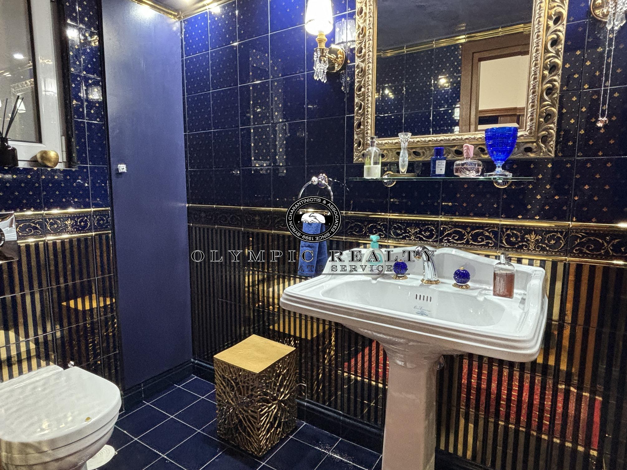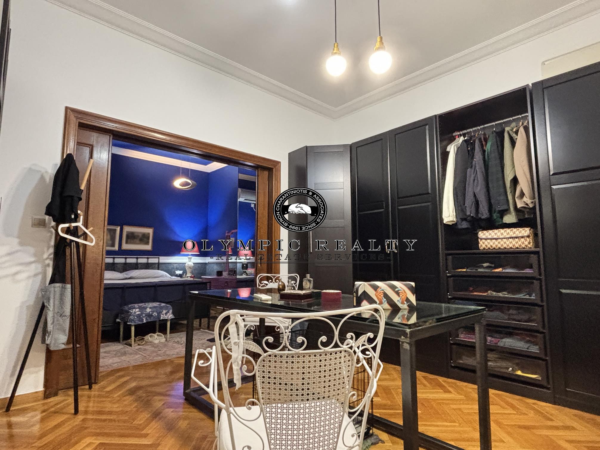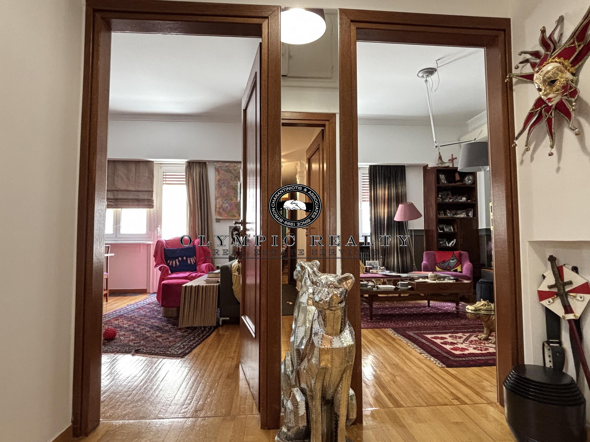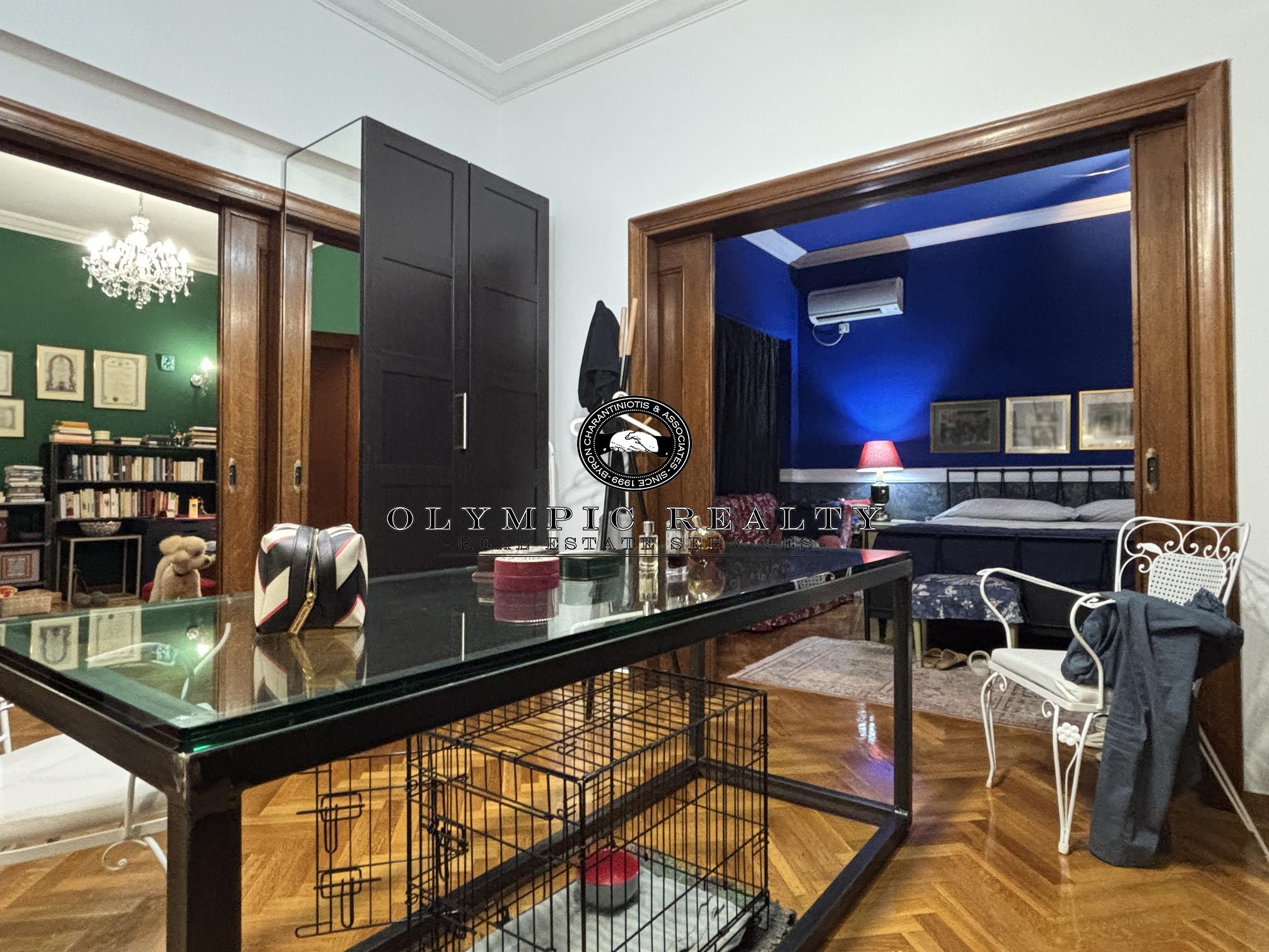 Σε πολύ καλή θέση, σε απόσταση αναπνοής από την πλατεία Κολωνακίου, σπάνιο οροφοδιαμέρισμα επιφάνειας 140 τ.μέτρων, 2ου ορόφου, σε φροντισμένη πολυκατοικία του 1955 με ωραία είσοδο. Αποτελείται από 5 κύριους χώρους (με δυνατότητα αναδιαρρύθμισης), εργονομική κουζίνα, 1 λουτρό και 1 wc το οποίο είναι επενδεδυμένο με αυθεντικά κεραμικά του οίκου Versace, 1 αποθήκη εντός διαμερίσματος και 1 αποθήκη στο υπόγειο της πολυκατοικίας στην οποία η πρόσβαση γίνεται και με τον ανελκυστήρα. Το διαμέρισμα έχει ανακαινιστεί εκ βάθρων και διαθέτει μεταξύ άλλων, αυτόνομη θέρμανση φυσικού αερίου, κουφώματα αλουμινίου με διπλά τζάμια, πόρτα ασφαλείας, σύστημα συναγερμού, ανακαινισμένο λουτρό, ανακαινισμένο wc, επιμελή συντήρηση στα αυθεντικά δρύινα πατώματα και τα εσωτερικά κουφώματα – πόρτες κλπ., ενώ διαθέτει κλιματισμό σε όλους τους χώρους. Κωδικός ακινήτου: 3183