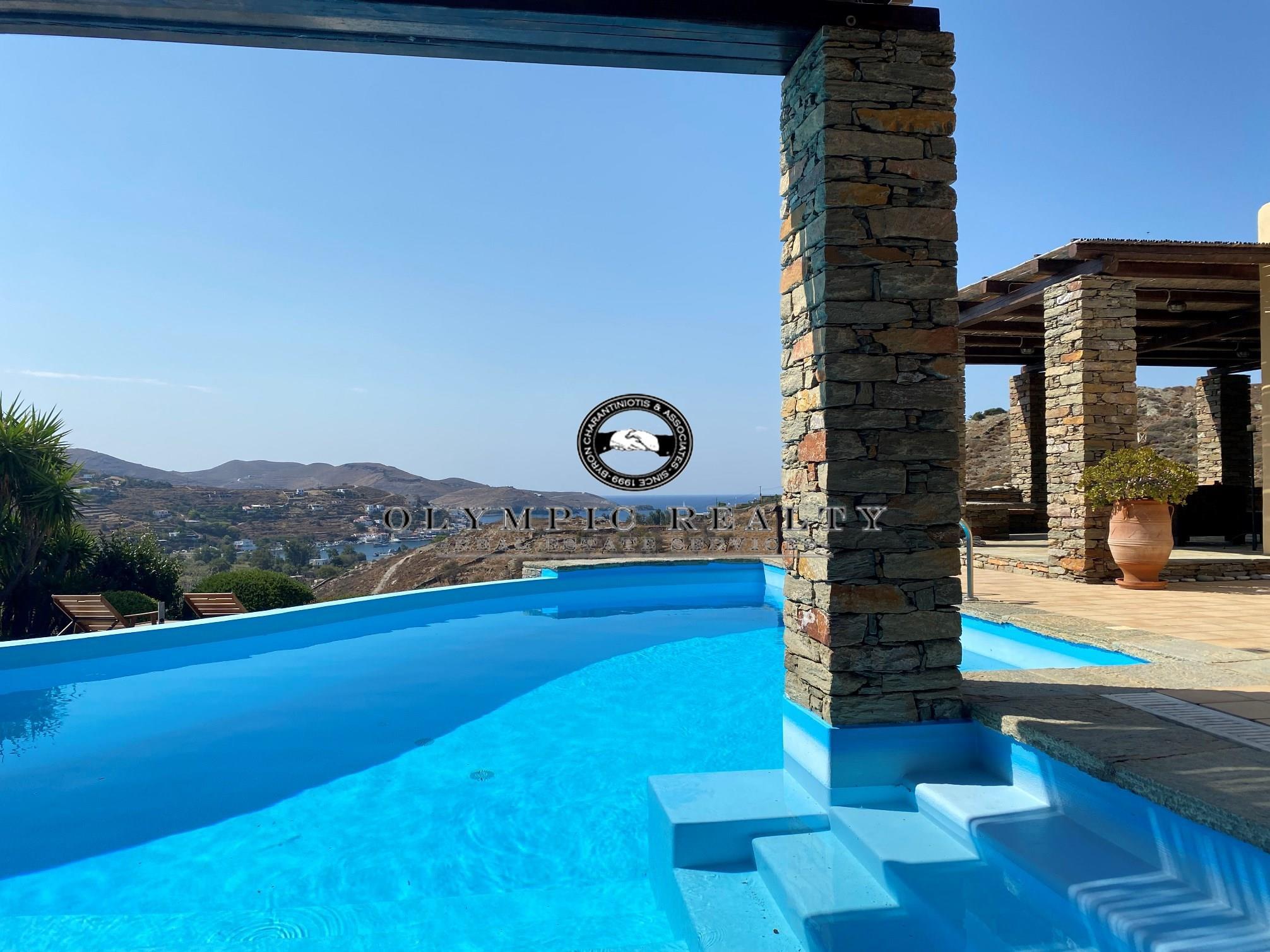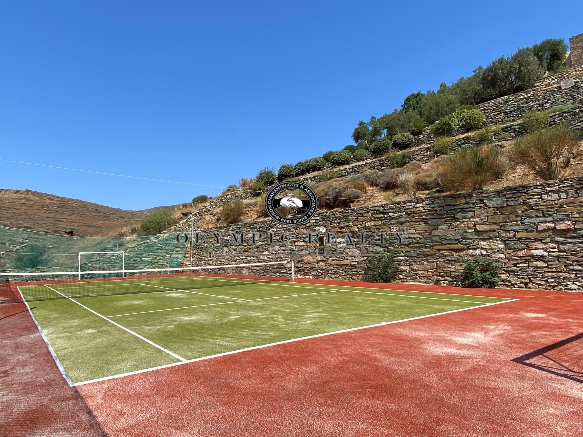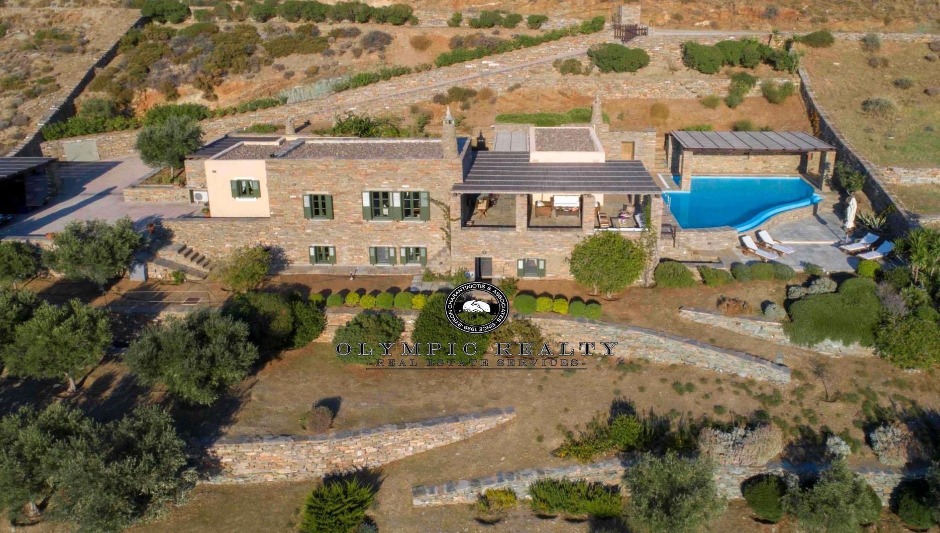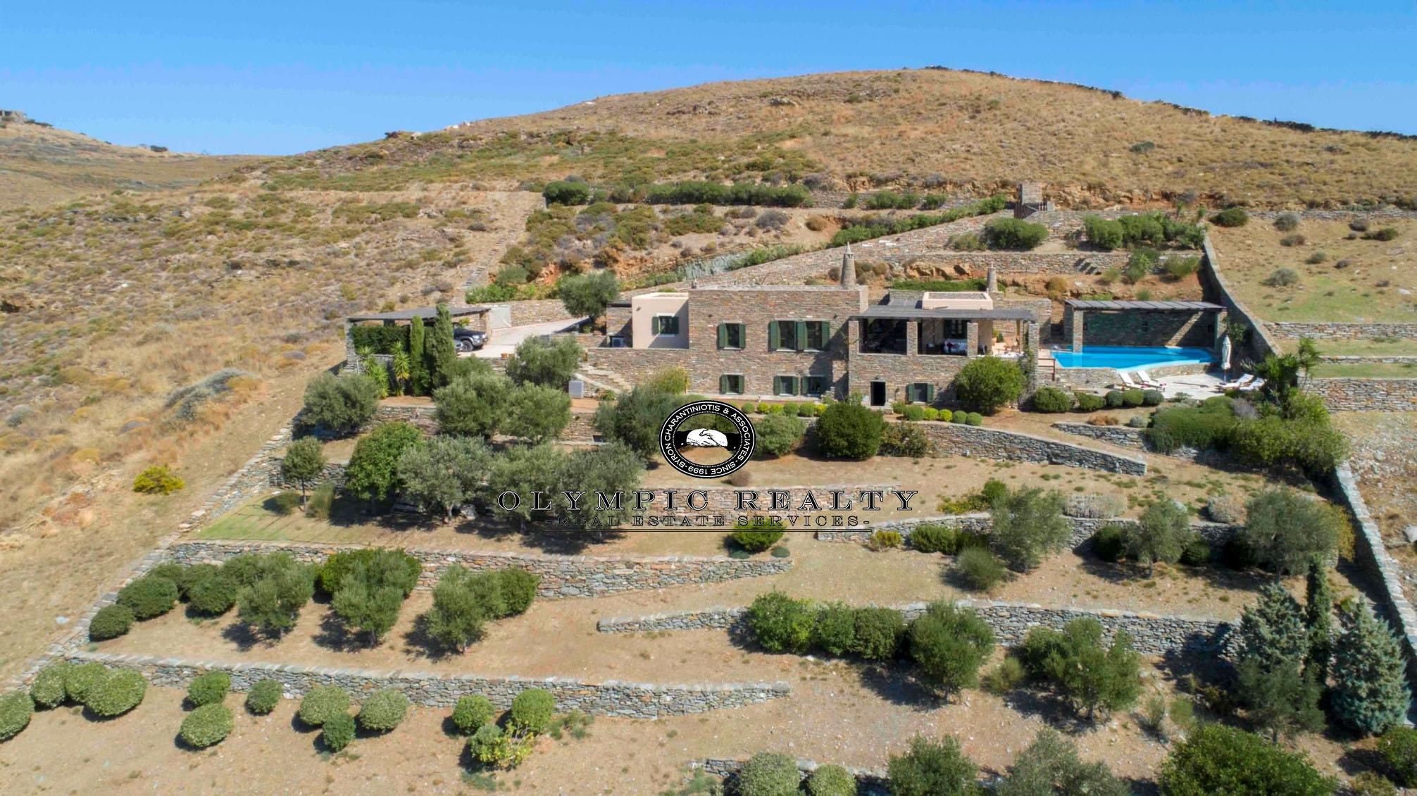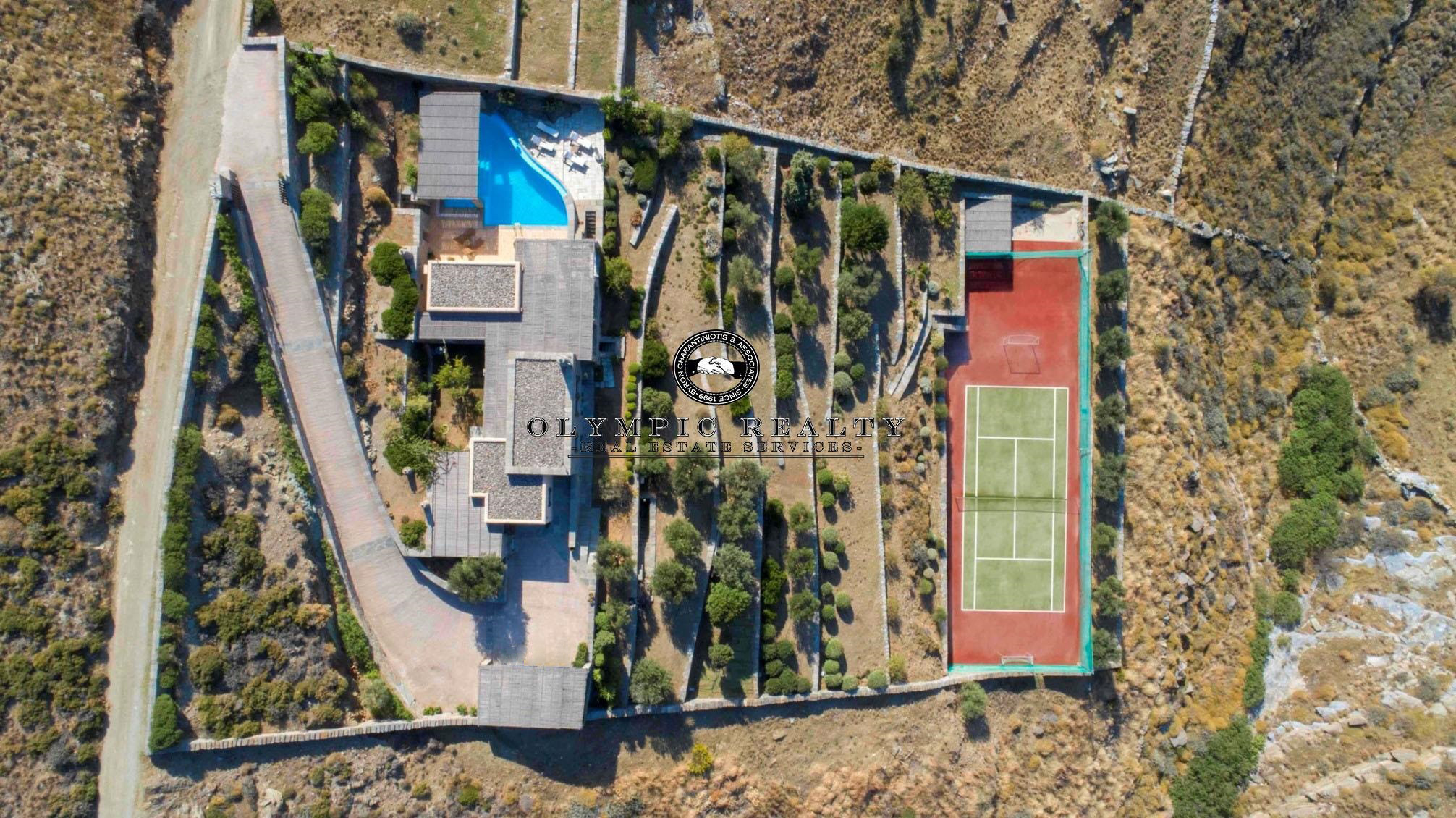 Η υπέροχη αυτή Βίλα έχει χτιστεί σε ένα απομονωμένο και αμφιθεατρικό σημείο του κόλπου, με γνώμονα την ιδιωτικότητα και την προσαρμογή της στο φυσικό τοπίο, σε ένα εξαιρετικά ήσυχο και ήρεμο περιβάλλον μακριά από την πολυκοσμία. Είναι μόλις 10 λεπτά από το λιμάνι και 7 λεπτά από το Βουρκάρι. Πρόκειται για μια κατοικία 4 εποχών ιδιαίτερης αρχιτεκτονικής, παραδοσιακού νησιώτικου ύφους (Τζιάς), συνολικής επιφάνειας 296 τ.μέτρων επί οικοπέδου 4.300 τ.μέτρων. Είναι απόλυτα εναρμονισμένη στο περιβάλλον όντας κατασκευασμένη με Τζιώτικη πέτρα (που συγκεκριμένα έχει εξαχθεί από το σημείο που χτίστηκε), ξύλο, τσιμεντοκονία, μάρμαρο και πέτρα από μοναδικούς τεχνίτες. Η αίσθηση που επικρατεί εντός της κατοικίας είναι η ειδυλλιακή ατμόσφαιρα και η θέα από τα διαμπερή ανοίγματα που είναι ειδικά σχεδιασμένα για να επεκτείνει τους άνετους χώρους της προς τον μεγάλο εξωτερικό χώρο και το χώρο της πισίνας που βρίσκεται ακριβώς μπροστά. Η κατοικία αναπτύσσεται σε 2 επίπεδα και διαθέτει μεγάλο living room – σαλόνι, ευρύχωρη και εργονομική κουζίνα, 4 υπνοδωμάτια εκ των οποίων το 1 master, και έχει έναν (1) ξενώνα ο οποίος ουσιαστικά είναι πλήρως αυτόνομος με δική του κουζίνα και λουτρό. Διαθέτει μεταξύ άλλων για τη λειτουργία της κατοικίας, κλιματισμό (air-condition) σε όλους τους χώρους, κεντρικό σύστημα θέρμανσης με καλοριφέρ, τζάκι, συναγερμό, κάμερες κλειστού κυκλώματος, κουφώματα αλουμινίου με διπλά τζάμια με παντζούρια και σίτες, εντοιχισμένες ηλεκτρικές συσκευές κα. Ο περιβάλλοντας χώρος διαθέτει πισίνα 75 τ.μέτρων, και οργανωμένο επαγγελματικό γήπεδο Τένις με υψηλή περίφραξη. Το οικόπεδο της κατοικίας έχει ομαλές κλίσεις στο οποίο έχουν δημιουργηθεί στάθμες για εύκολη πρόσβαση σε όλα του τα σημεία, είναι φυτεμένο με ελαιοδεντρα και θαμνοειδή δέντρα και καλλωπιστικά φυτά με αυτόματο πότισμα, ενώ είναι περιφραγμένο με πέτρινο τοίχο που διαθέτει ανοίγματα με πόρτες και γκαραζόπορτα για τις θέσεις στάθμευσης οχημάτων με σκεπαστό parking. Η κατοικία είναι άριστα συντηρημένη και έτοιμη προς χρήση. Παραδίδεται άμεσα. Κωδικός : 3276
