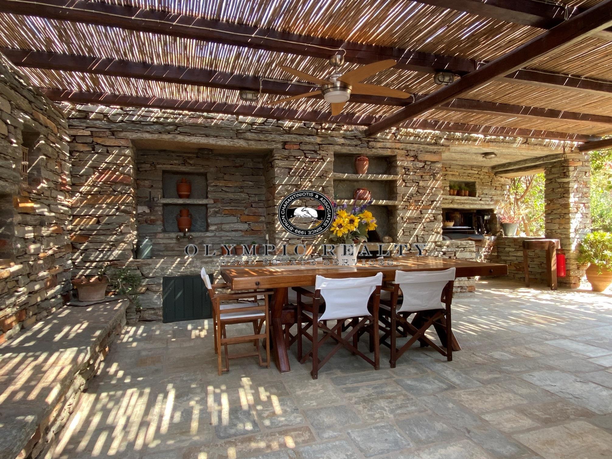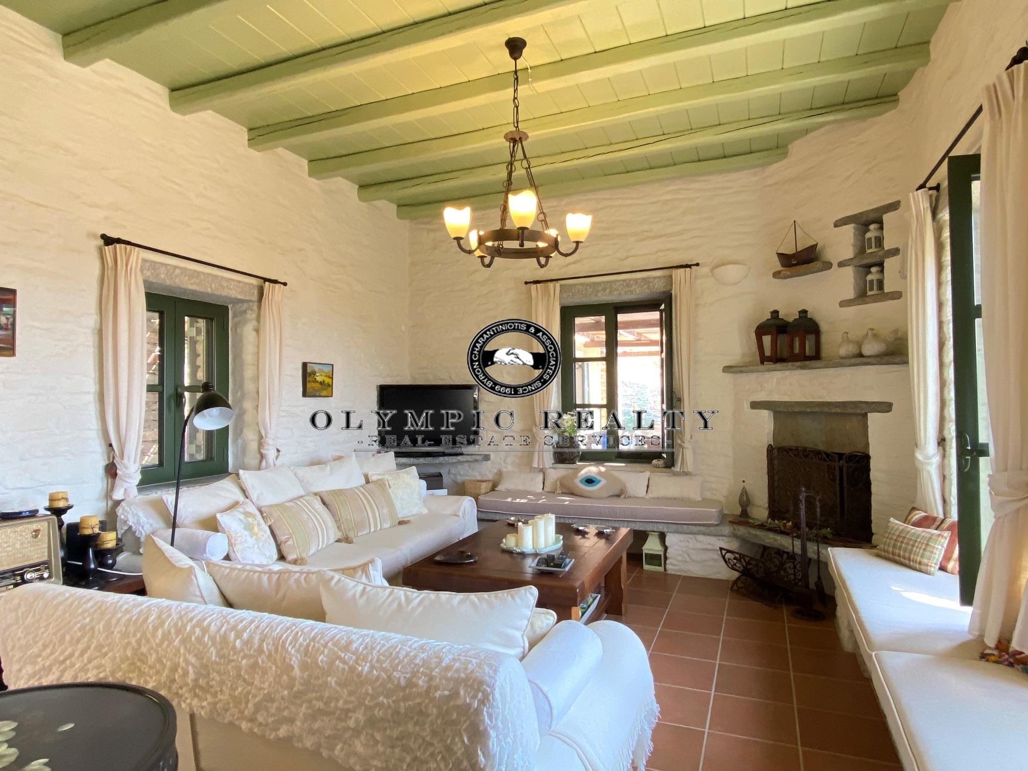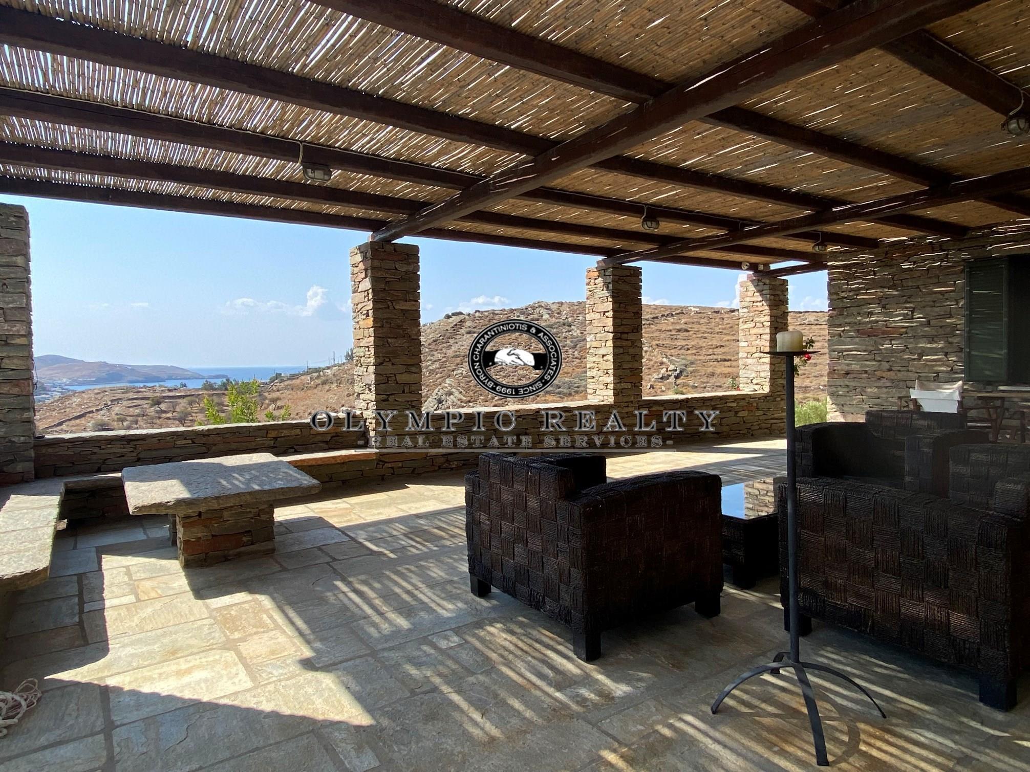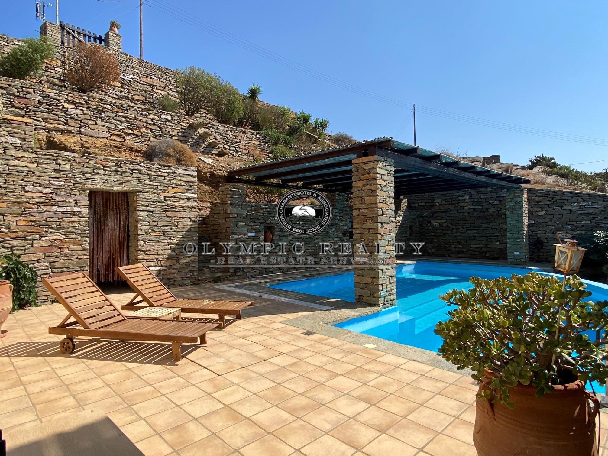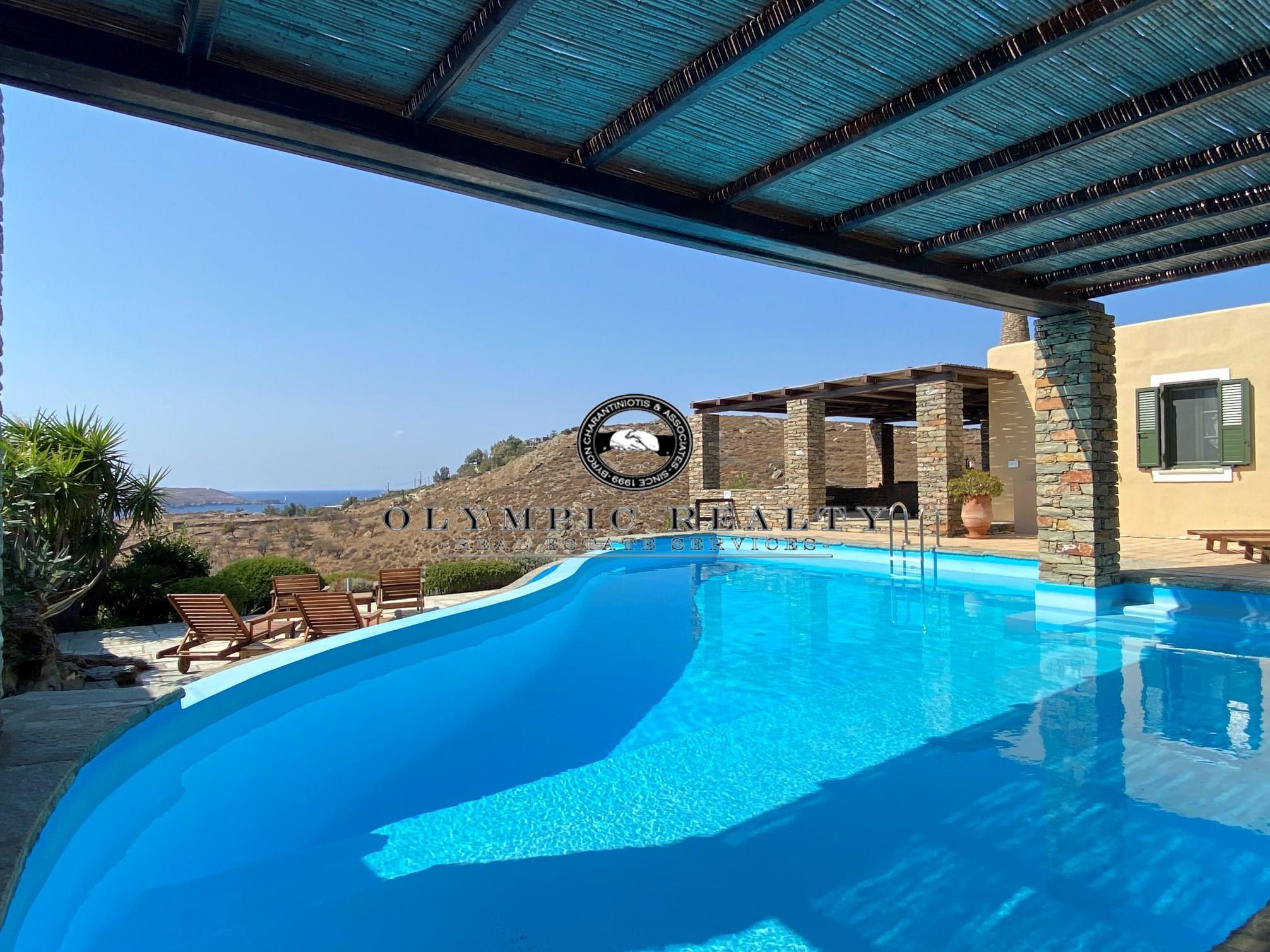 Η υπέροχη αυτή Βίλα έχει χτιστεί σε ένα απομονωμένο και αμφιθεατρικό σημείο του κόλπου, με γνώμονα την ιδιωτικότητα και την προσαρμογή της στο φυσικό τοπίο, σε ένα εξαιρετικά ήσυχο και ήρεμο περιβάλλον μακριά από την πολυκοσμία. Είναι μόλις 10 λεπτά από το λιμάνι και 7 λεπτά από το Βουρκάρι. Πρόκειται για μια κατοικία 4 εποχών ιδιαίτερης αρχιτεκτονικής, παραδοσιακού νησιώτικου ύφους (Τζιάς), συνολικής επιφάνειας 296 τ.μέτρων επί οικοπέδου 4.300 τ.μέτρων. Είναι απόλυτα εναρμονισμένη στο περιβάλλον όντας κατασκευασμένη με Τζιώτικη πέτρα (που συγκεκριμένα έχει εξαχθεί από το σημείο που χτίστηκε), ξύλο, τσιμεντοκονία, μάρμαρο και πέτρα από μοναδικούς τεχνίτες. Η αίσθηση που επικρατεί εντός της κατοικίας είναι η ειδυλλιακή ατμόσφαιρα και η θέα από τα διαμπερή ανοίγματα που είναι ειδικά σχεδιασμένα για να επεκτείνει τους άνετους χώρους της προς τον μεγάλο εξωτερικό χώρο και το χώρο της πισίνας που βρίσκεται ακριβώς μπροστά. Η κατοικία αναπτύσσεται σε 2 επίπεδα και διαθέτει μεγάλο living room – σαλόνι, ευρύχωρη και εργονομική κουζίνα, 4 υπνοδωμάτια εκ των οποίων το 1 master, και έχει έναν (1) ξενώνα ο οποίος ουσιαστικά είναι πλήρως αυτόνομος με δική του κουζίνα και λουτρό. Διαθέτει μεταξύ άλλων για τη λειτουργία της κατοικίας, κλιματισμό (air-condition) σε όλους τους χώρους, κεντρικό σύστημα θέρμανσης με καλοριφέρ, τζάκι, συναγερμό, κάμερες κλειστού κυκλώματος, κουφώματα αλουμινίου με διπλά τζάμια με παντζούρια και σίτες, εντοιχισμένες ηλεκτρικές συσκευές κα. Ο περιβάλλοντας χώρος διαθέτει πισίνα 75 τ.μέτρων, και οργανωμένο επαγγελματικό γήπεδο Τένις με υψηλή περίφραξη. Το οικόπεδο της κατοικίας έχει ομαλές κλίσεις στο οποίο έχουν δημιουργηθεί στάθμες για εύκολη πρόσβαση σε όλα του τα σημεία, είναι φυτεμένο με ελαιοδεντρα και θαμνοειδή δέντρα και καλλωπιστικά φυτά με αυτόματο πότισμα, ενώ είναι περιφραγμένο με πέτρινο τοίχο που διαθέτει ανοίγματα με πόρτες και γκαραζόπορτα για τις θέσεις στάθμευσης οχημάτων με σκεπαστό parking. Η κατοικία είναι άριστα συντηρημένη και έτοιμη προς χρήση. Παραδίδεται άμεσα. Κωδικός : 3276