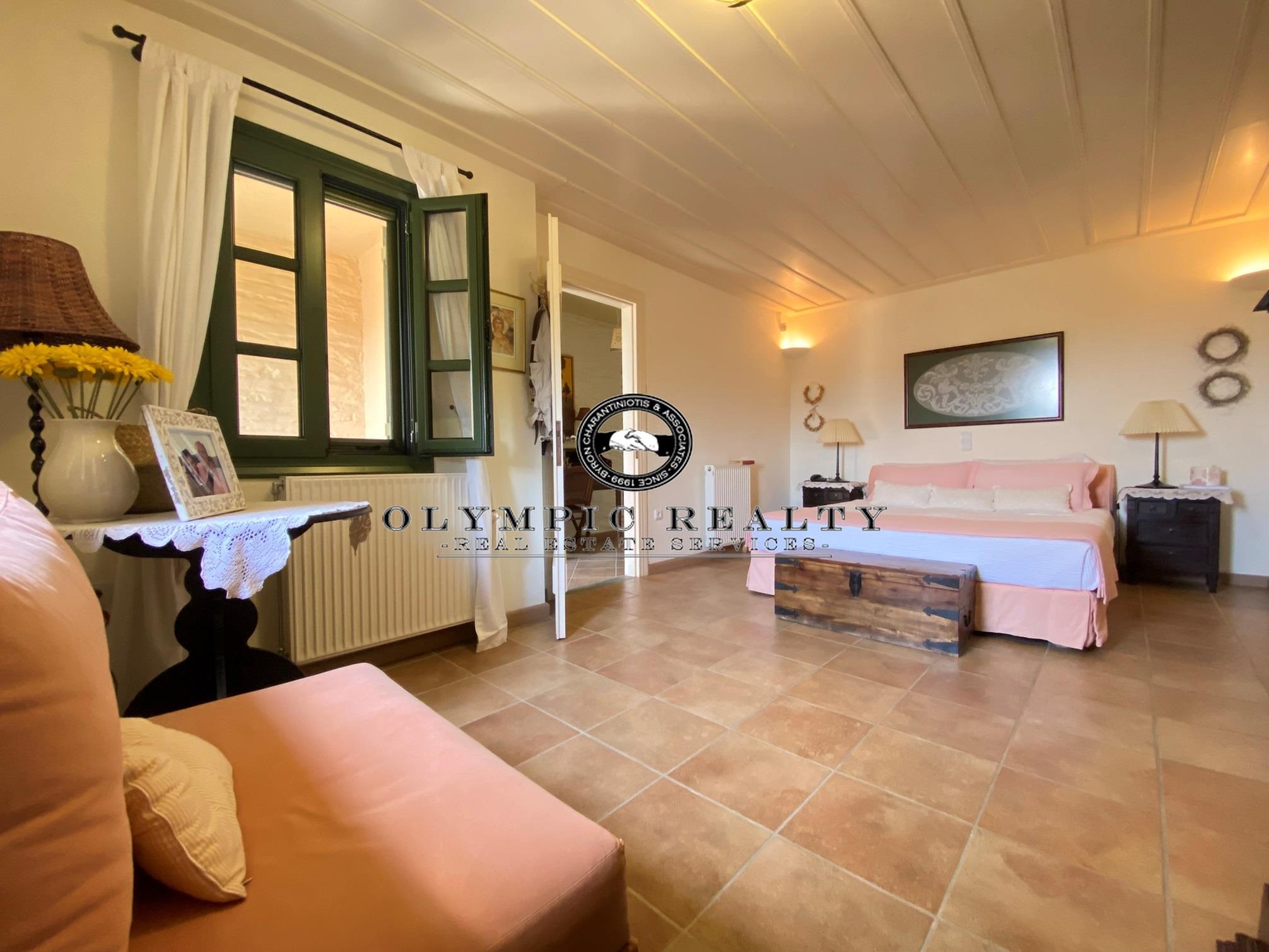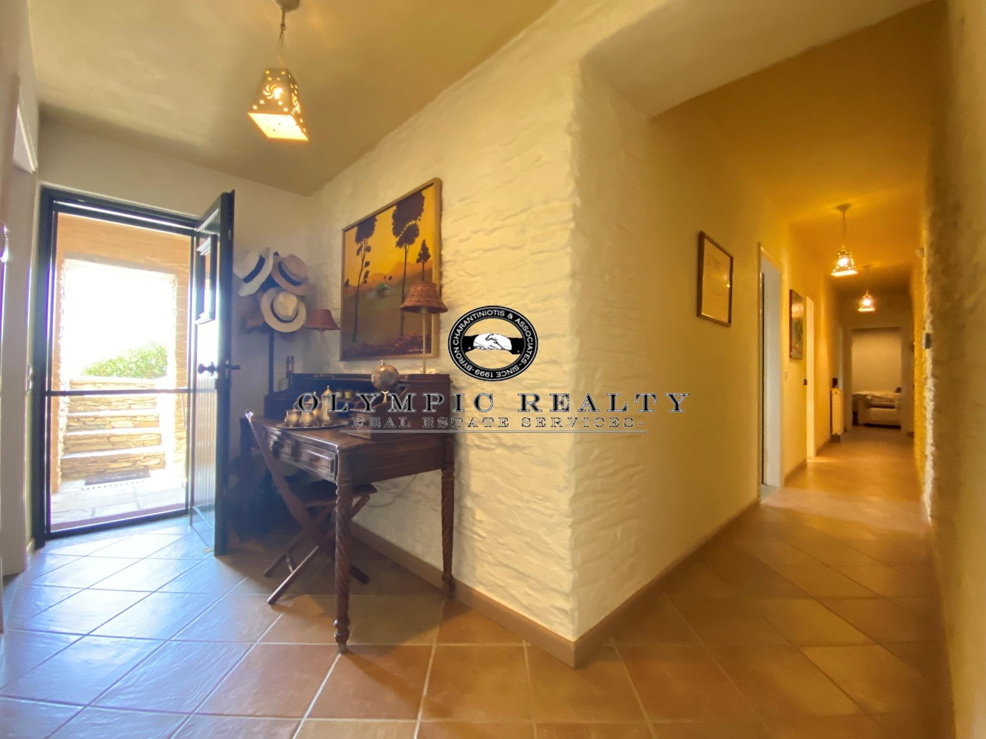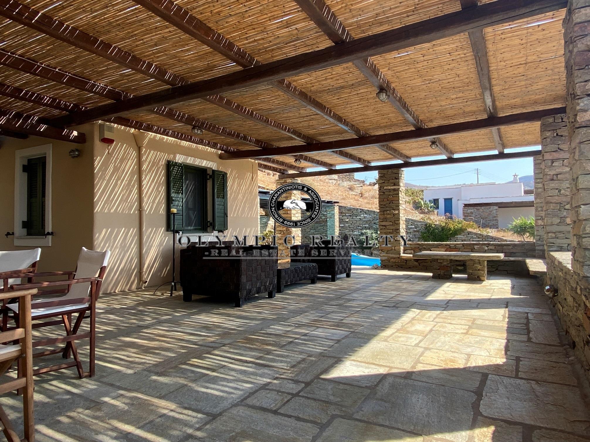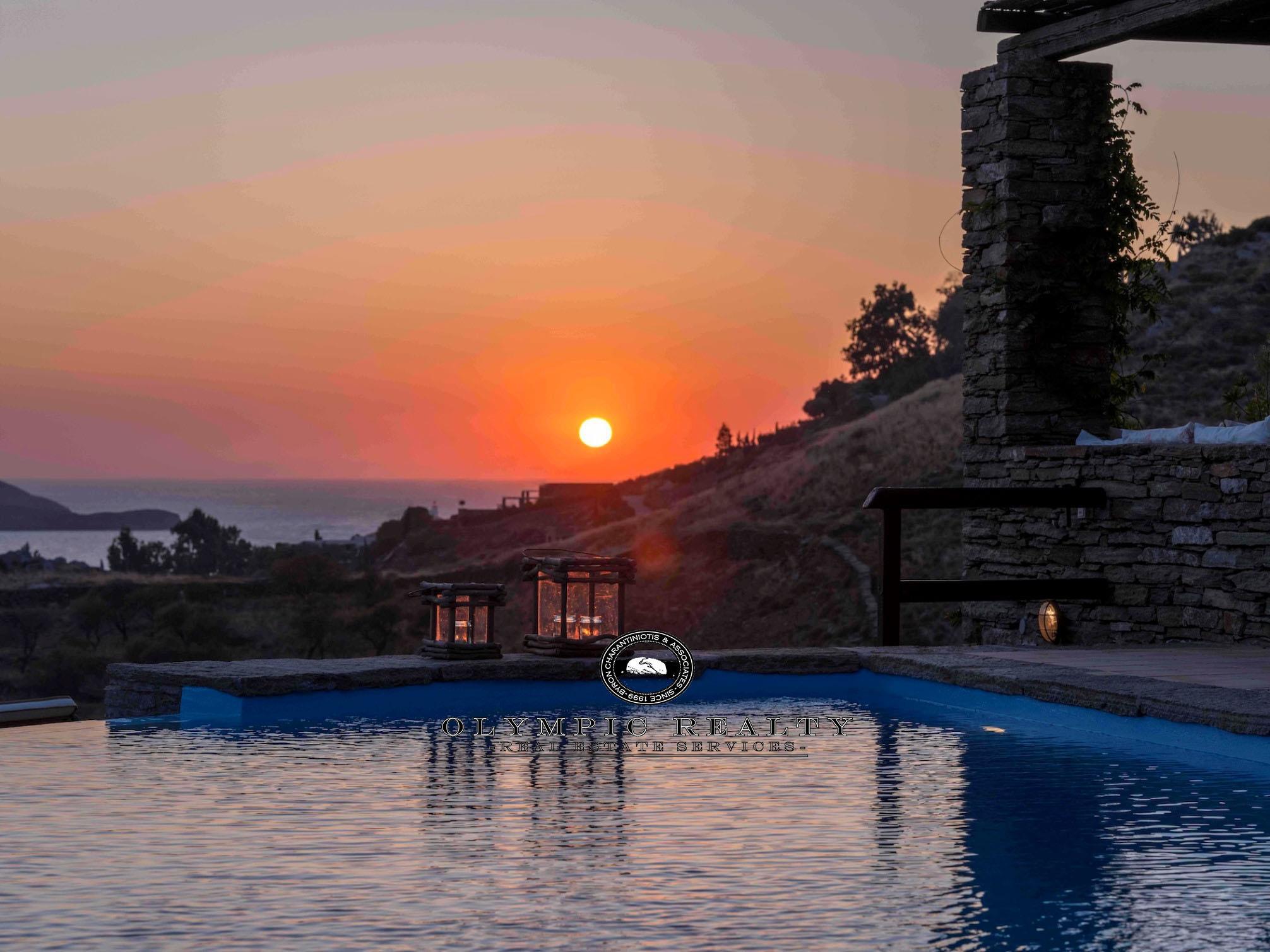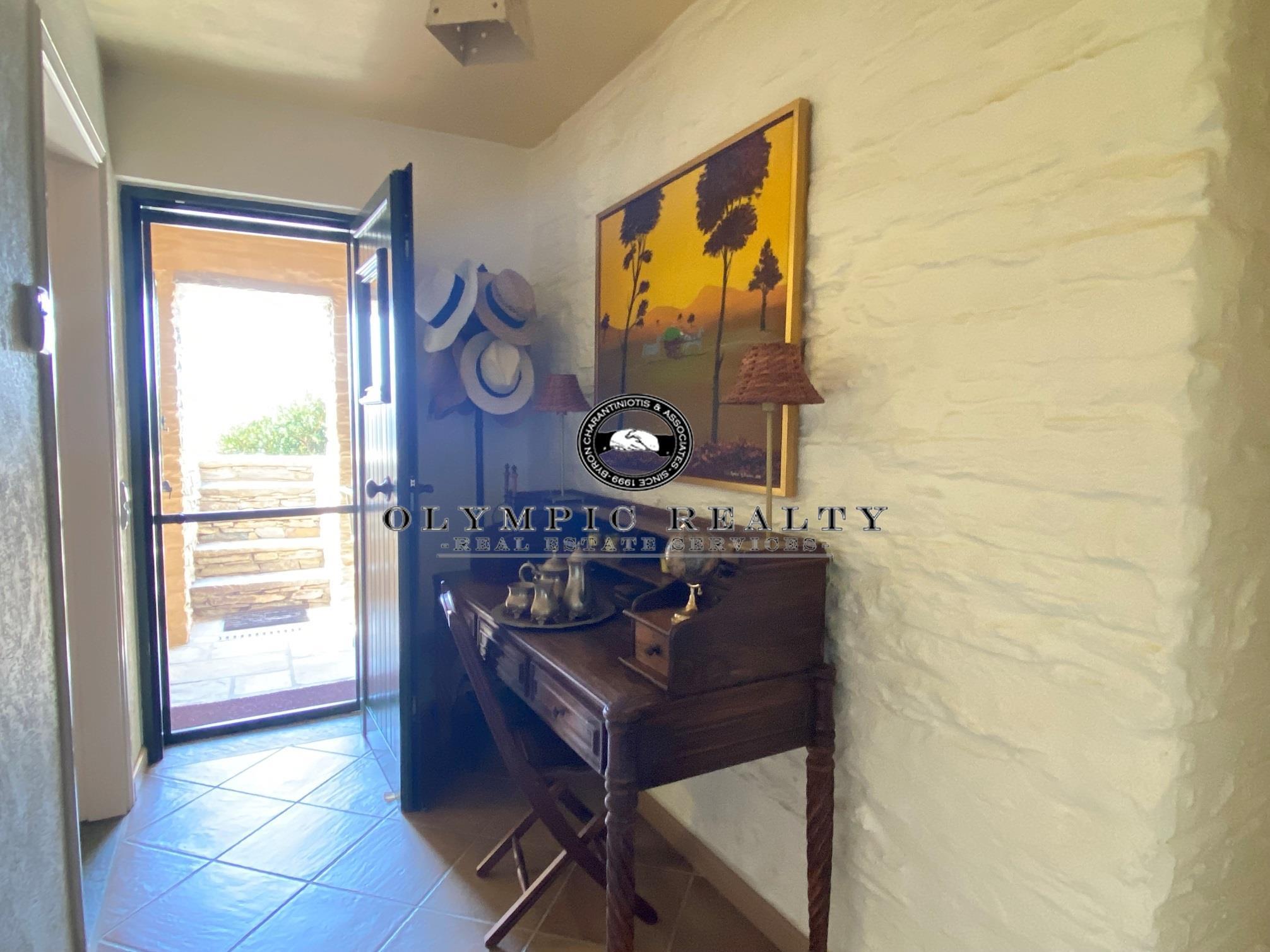 Η υπέροχη αυτή Βίλα έχει χτιστεί σε ένα απομονωμένο και αμφιθεατρικό σημείο του κόλπου, με γνώμονα την ιδιωτικότητα και την προσαρμογή της στο φυσικό τοπίο, σε ένα εξαιρετικά ήσυχο και ήρεμο περιβάλλον μακριά από την πολυκοσμία. Είναι μόλις 10 λεπτά από το λιμάνι και 7 λεπτά από το Βουρκάρι. Πρόκειται για μια κατοικία 4 εποχών ιδιαίτερης αρχιτεκτονικής, παραδοσιακού νησιώτικου ύφους (Τζιάς), συνολικής επιφάνειας 296 τ.μέτρων επί οικοπέδου 4.300 τ.μέτρων. Είναι απόλυτα εναρμονισμένη στο περιβάλλον όντας κατασκευασμένη με Τζιώτικη πέτρα (που συγκεκριμένα έχει εξαχθεί από το σημείο που χτίστηκε), ξύλο, τσιμεντοκονία, μάρμαρο και πέτρα από μοναδικούς τεχνίτες. Η αίσθηση που επικρατεί εντός της κατοικίας είναι η ειδυλλιακή ατμόσφαιρα και η θέα από τα διαμπερή ανοίγματα που είναι ειδικά σχεδιασμένα για να επεκτείνει τους άνετους χώρους της προς τον μεγάλο εξωτερικό χώρο και το χώρο της πισίνας που βρίσκεται ακριβώς μπροστά. Η κατοικία αναπτύσσεται σε 2 επίπεδα και διαθέτει μεγάλο living room – σαλόνι, ευρύχωρη και εργονομική κουζίνα, 4 υπνοδωμάτια εκ των οποίων το 1 master, και έχει έναν (1) ξενώνα ο οποίος ουσιαστικά είναι πλήρως αυτόνομος με δική του κουζίνα και λουτρό. Διαθέτει μεταξύ άλλων για τη λειτουργία της κατοικίας, κλιματισμό (air-condition) σε όλους τους χώρους, κεντρικό σύστημα θέρμανσης με καλοριφέρ, τζάκι, συναγερμό, κάμερες κλειστού κυκλώματος, κουφώματα αλουμινίου με διπλά τζάμια με παντζούρια και σίτες, εντοιχισμένες ηλεκτρικές συσκευές κα. Ο περιβάλλοντας χώρος διαθέτει πισίνα 75 τ.μέτρων, και οργανωμένο επαγγελματικό γήπεδο Τένις με υψηλή περίφραξη. Το οικόπεδο της κατοικίας έχει ομαλές κλίσεις στο οποίο έχουν δημιουργηθεί στάθμες για εύκολη πρόσβαση σε όλα του τα σημεία, είναι φυτεμένο με ελαιοδεντρα και θαμνοειδή δέντρα και καλλωπιστικά φυτά με αυτόματο πότισμα, ενώ είναι περιφραγμένο με πέτρινο τοίχο που διαθέτει ανοίγματα με πόρτες και γκαραζόπορτα για τις θέσεις στάθμευσης οχημάτων με σκεπαστό parking. Η κατοικία είναι άριστα συντηρημένη και έτοιμη προς χρήση. Παραδίδεται άμεσα. Κωδικός : 3276