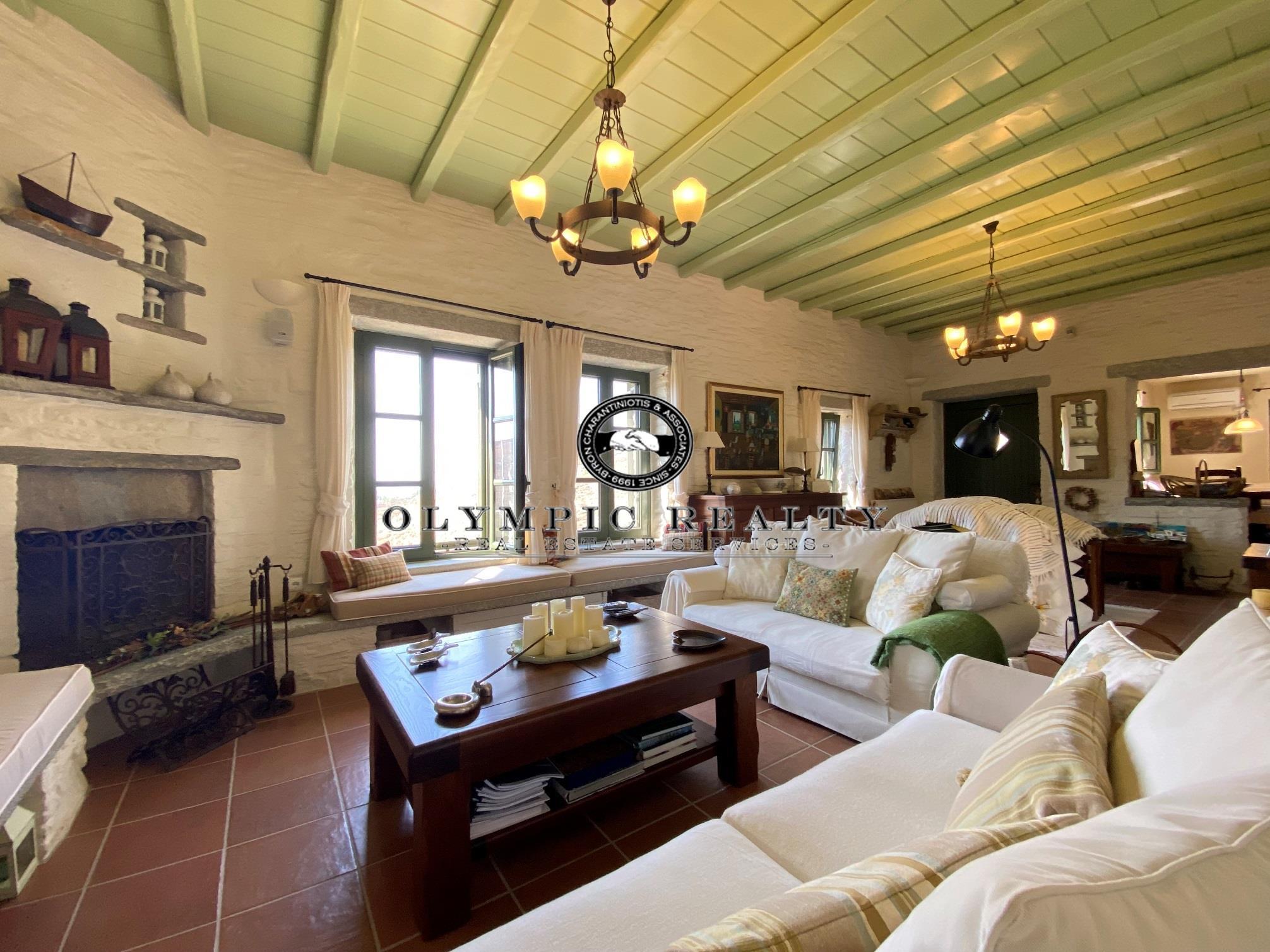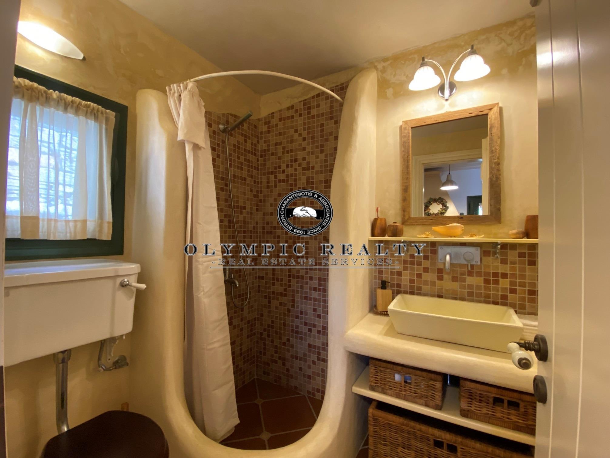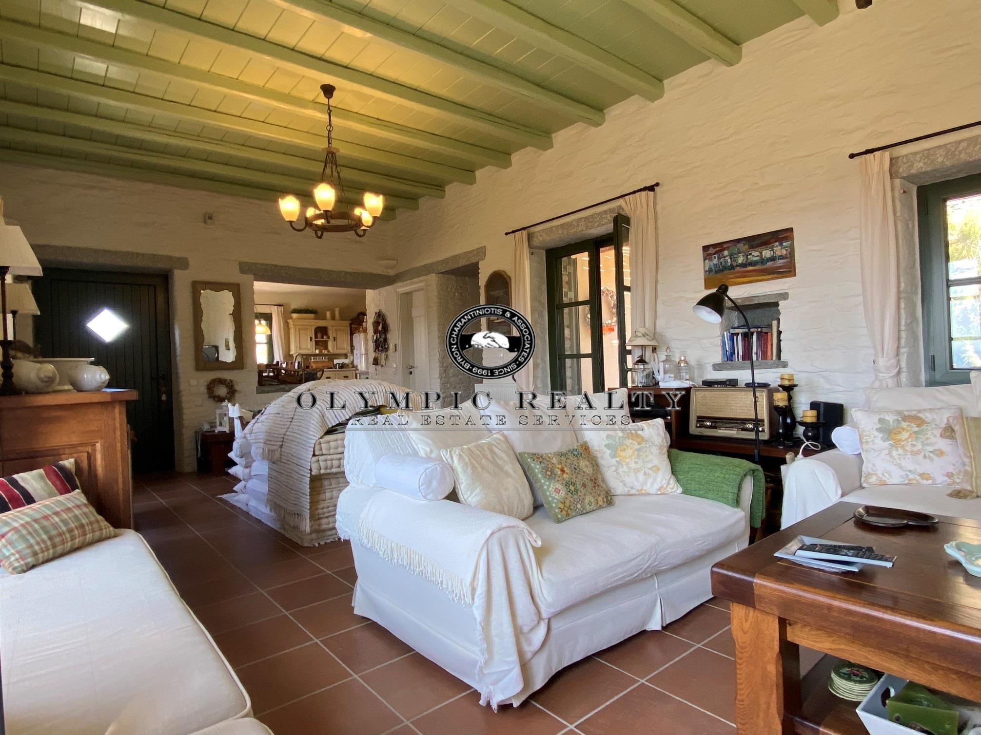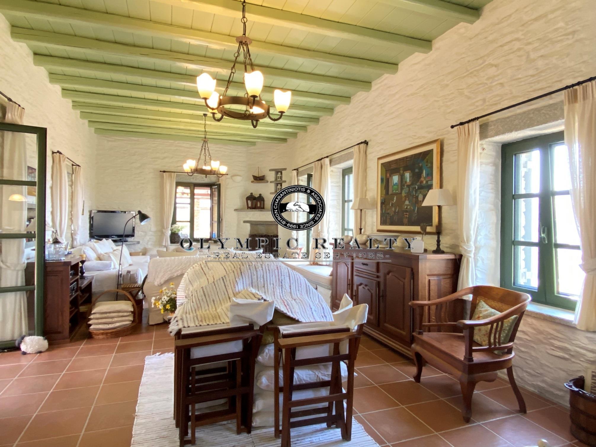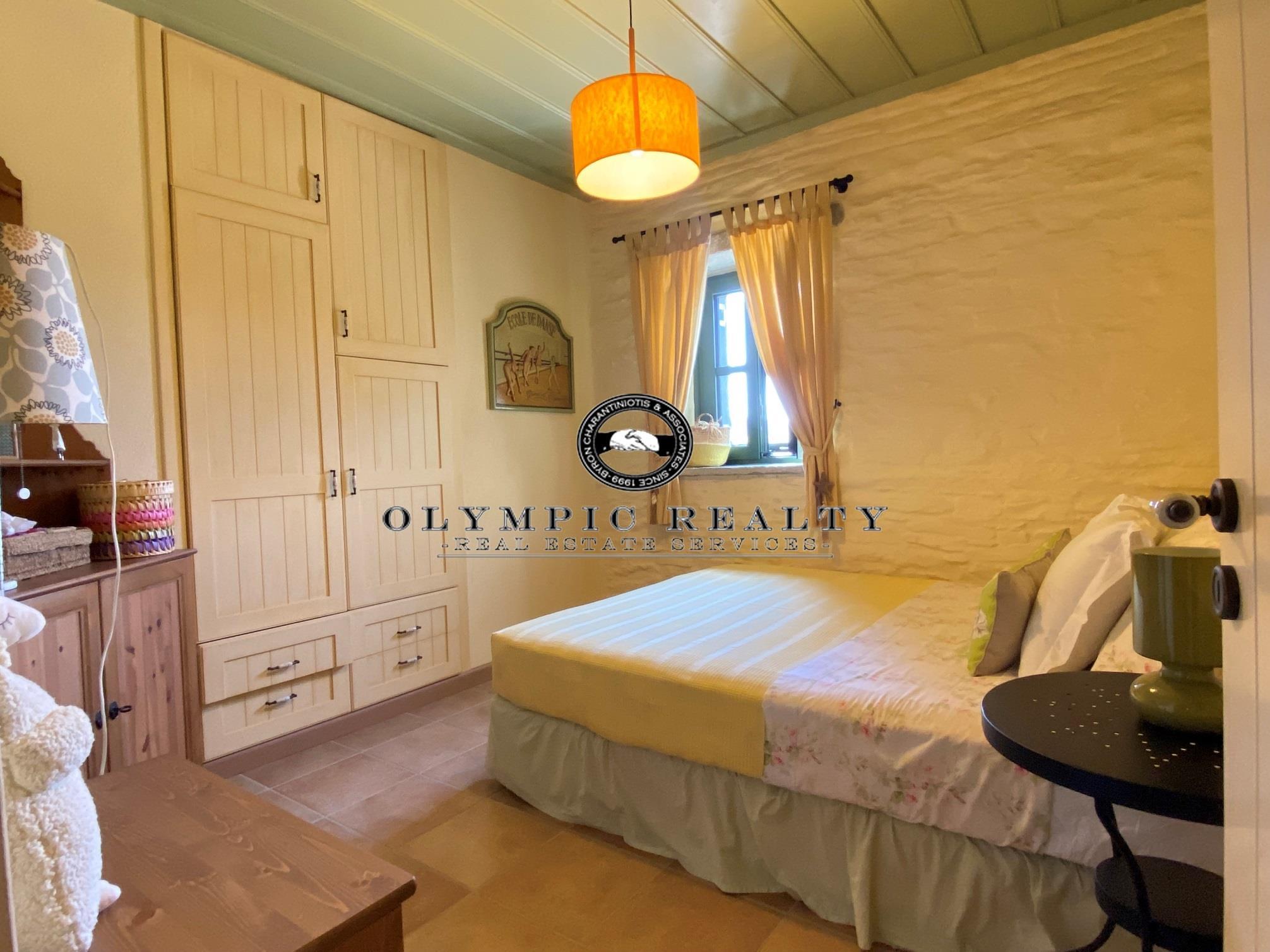 Η υπέροχη αυτή Βίλα έχει χτιστεί σε ένα απομονωμένο και αμφιθεατρικό σημείο του κόλπου, με γνώμονα την ιδιωτικότητα και την προσαρμογή της στο φυσικό τοπίο, σε ένα εξαιρετικά ήσυχο και ήρεμο περιβάλλον μακριά από την πολυκοσμία. Είναι μόλις 10 λεπτά από το λιμάνι και 7 λεπτά από το Βουρκάρι. Πρόκειται για μια κατοικία 4 εποχών ιδιαίτερης αρχιτεκτονικής, παραδοσιακού νησιώτικου ύφους (Τζιάς), συνολικής επιφάνειας 296 τ.μέτρων επί οικοπέδου 4.300 τ.μέτρων. Είναι απόλυτα εναρμονισμένη στο περιβάλλον όντας κατασκευασμένη με Τζιώτικη πέτρα (που συγκεκριμένα έχει εξαχθεί από το σημείο που χτίστηκε), ξύλο, τσιμεντοκονία, μάρμαρο και πέτρα από μοναδικούς τεχνίτες. Η αίσθηση που επικρατεί εντός της κατοικίας είναι η ειδυλλιακή ατμόσφαιρα και η θέα από τα διαμπερή ανοίγματα που είναι ειδικά σχεδιασμένα για να επεκτείνει τους άνετους χώρους της προς τον μεγάλο εξωτερικό χώρο και το χώρο της πισίνας που βρίσκεται ακριβώς μπροστά. Η κατοικία αναπτύσσεται σε 2 επίπεδα και διαθέτει μεγάλο living room – σαλόνι, ευρύχωρη και εργονομική κουζίνα, 4 υπνοδωμάτια εκ των οποίων το 1 master, και έχει έναν (1) ξενώνα ο οποίος ουσιαστικά είναι πλήρως αυτόνομος με δική του κουζίνα και λουτρό. Διαθέτει μεταξύ άλλων για τη λειτουργία της κατοικίας, κλιματισμό (air-condition) σε όλους τους χώρους, κεντρικό σύστημα θέρμανσης με καλοριφέρ, τζάκι, συναγερμό, κάμερες κλειστού κυκλώματος, κουφώματα αλουμινίου με διπλά τζάμια με παντζούρια και σίτες, εντοιχισμένες ηλεκτρικές συσκευές κα. Ο περιβάλλοντας χώρος διαθέτει πισίνα 75 τ.μέτρων, και οργανωμένο επαγγελματικό γήπεδο Τένις με υψηλή περίφραξη. Το οικόπεδο της κατοικίας έχει ομαλές κλίσεις στο οποίο έχουν δημιουργηθεί στάθμες για εύκολη πρόσβαση σε όλα του τα σημεία, είναι φυτεμένο με ελαιοδεντρα και θαμνοειδή δέντρα και καλλωπιστικά φυτά με αυτόματο πότισμα, ενώ είναι περιφραγμένο με πέτρινο τοίχο που διαθέτει ανοίγματα με πόρτες και γκαραζόπορτα για τις θέσεις στάθμευσης οχημάτων με σκεπαστό parking. Η κατοικία είναι άριστα συντηρημένη και έτοιμη προς χρήση. Παραδίδεται άμεσα. Κωδικός : 3276