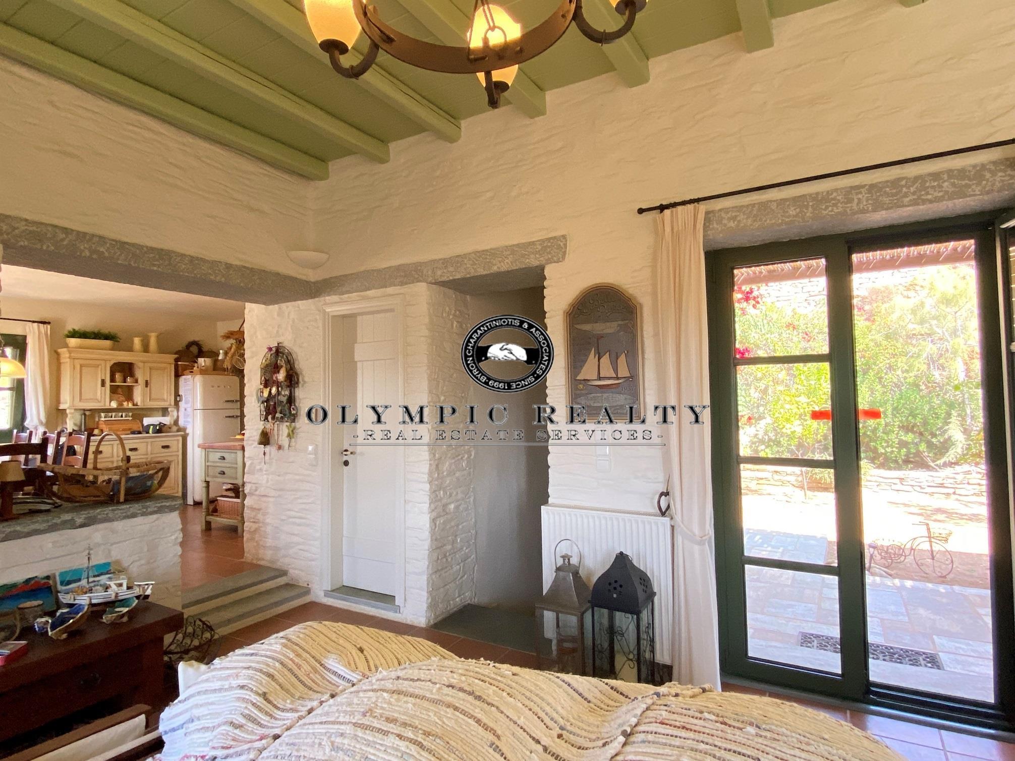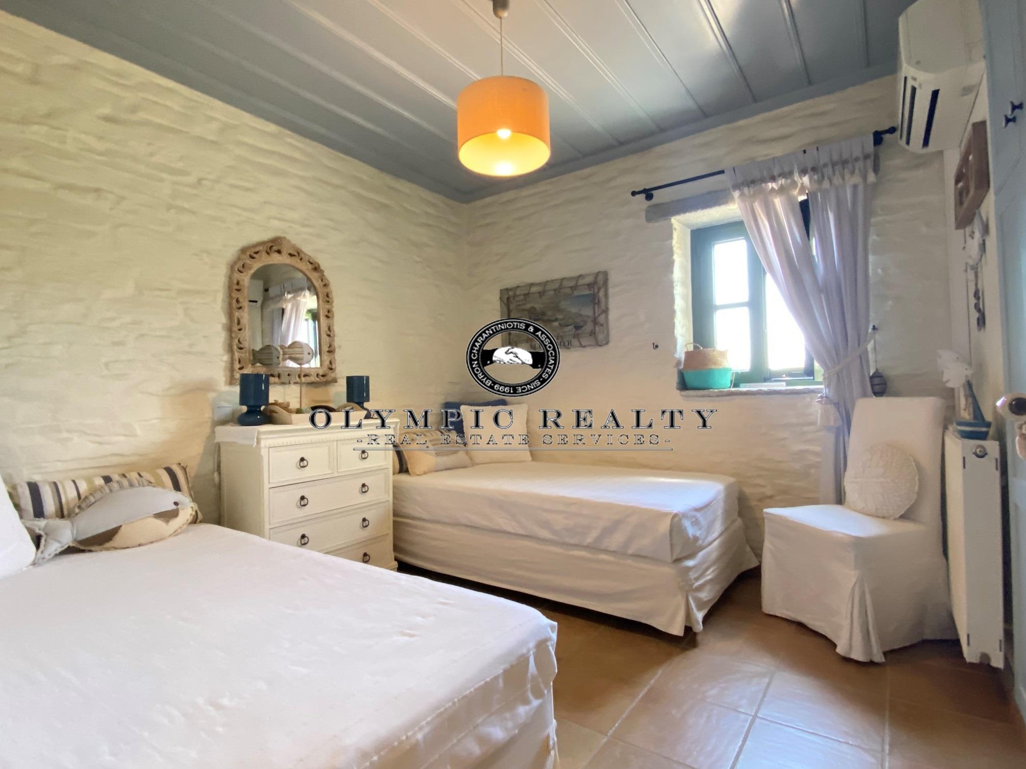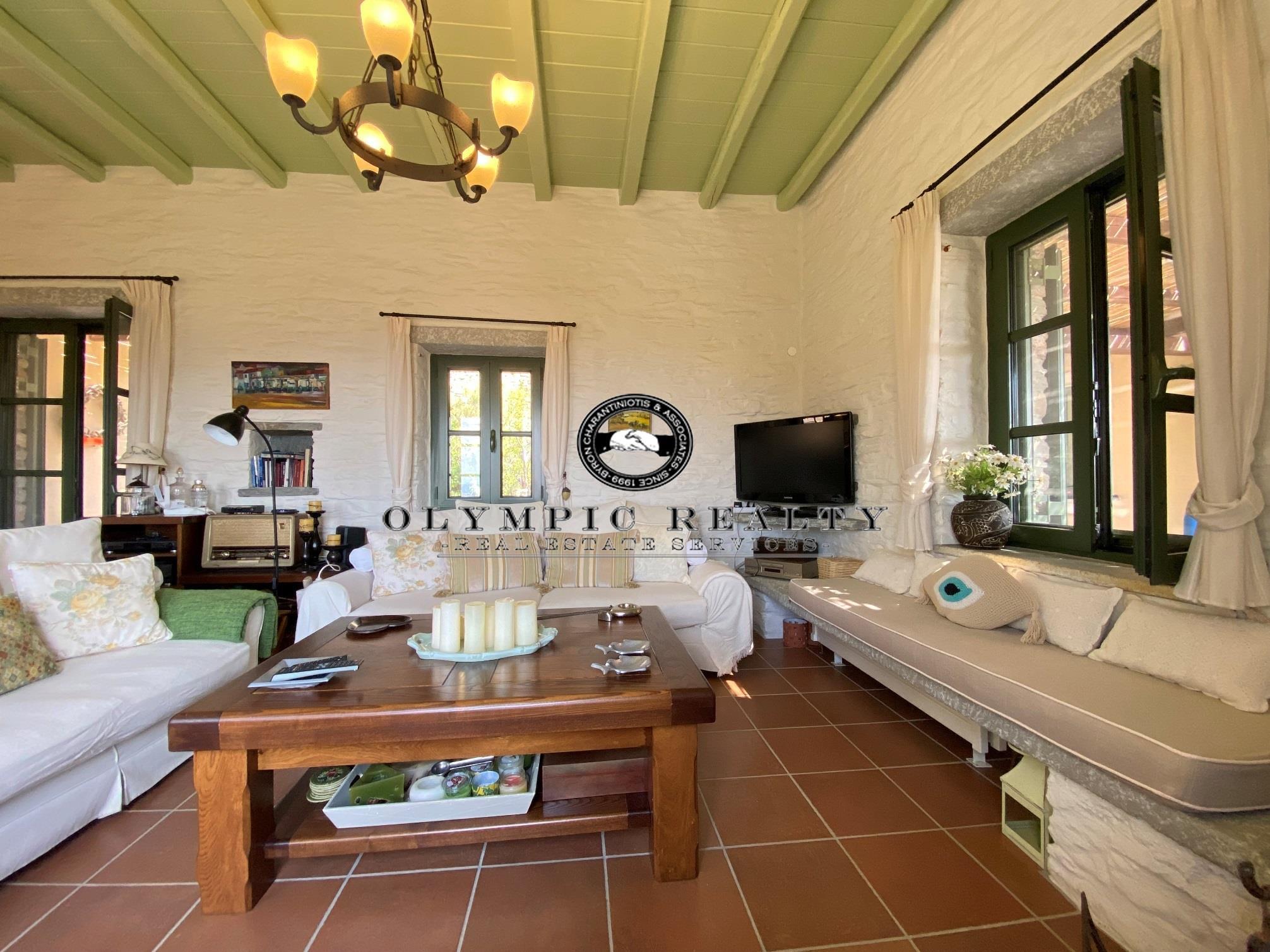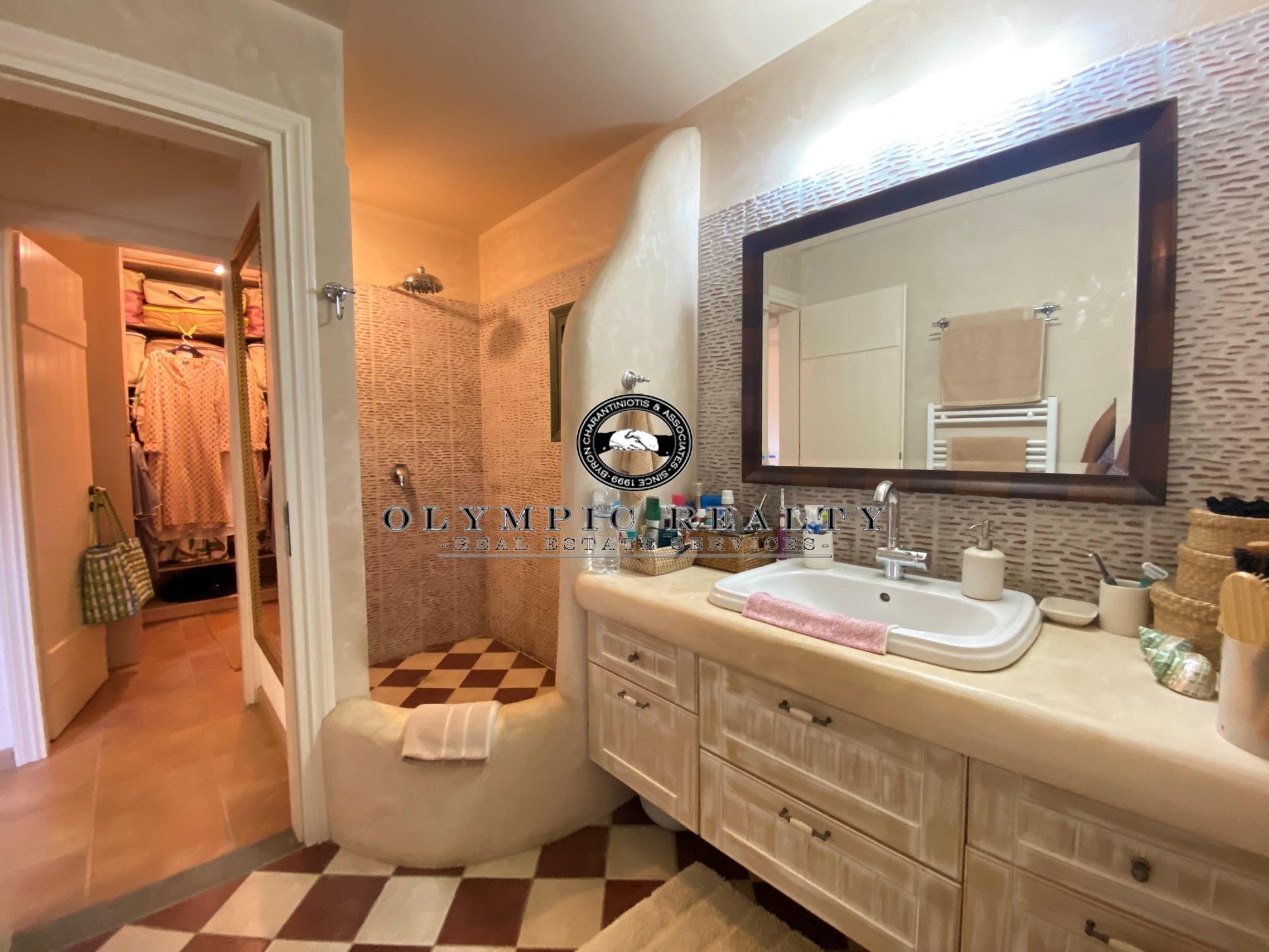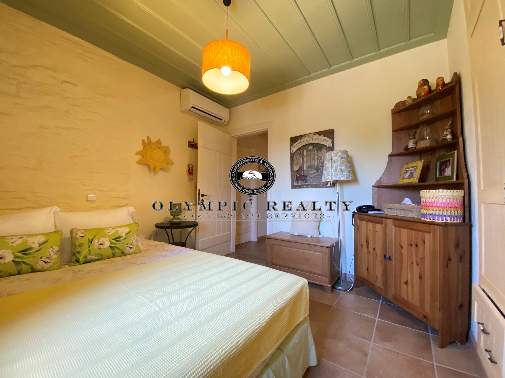 Η υπέροχη αυτή Βίλα έχει χτιστεί σε ένα απομονωμένο και αμφιθεατρικό σημείο του κόλπου, με γνώμονα την ιδιωτικότητα και την προσαρμογή της στο φυσικό τοπίο, σε ένα εξαιρετικά ήσυχο και ήρεμο περιβάλλον μακριά από την πολυκοσμία. Είναι μόλις 10 λεπτά από το λιμάνι και 7 λεπτά από το Βουρκάρι. Πρόκειται για μια κατοικία 4 εποχών ιδιαίτερης αρχιτεκτονικής, παραδοσιακού νησιώτικου ύφους (Τζιάς), συνολικής επιφάνειας 296 τ.μέτρων επί οικοπέδου 4.300 τ.μέτρων. Είναι απόλυτα εναρμονισμένη στο περιβάλλον όντας κατασκευασμένη με Τζιώτικη πέτρα (που συγκεκριμένα έχει εξαχθεί από το σημείο που χτίστηκε), ξύλο, τσιμεντοκονία, μάρμαρο και πέτρα από μοναδικούς τεχνίτες. Η αίσθηση που επικρατεί εντός της κατοικίας είναι η ειδυλλιακή ατμόσφαιρα και η θέα από τα διαμπερή ανοίγματα που είναι ειδικά σχεδιασμένα για να επεκτείνει τους άνετους χώρους της προς τον μεγάλο εξωτερικό χώρο και το χώρο της πισίνας που βρίσκεται ακριβώς μπροστά. Η κατοικία αναπτύσσεται σε 2 επίπεδα και διαθέτει μεγάλο living room – σαλόνι, ευρύχωρη και εργονομική κουζίνα, 4 υπνοδωμάτια εκ των οποίων το 1 master, και έχει έναν (1) ξενώνα ο οποίος ουσιαστικά είναι πλήρως αυτόνομος με δική του κουζίνα και λουτρό. Διαθέτει μεταξύ άλλων για τη λειτουργία της κατοικίας, κλιματισμό (air-condition) σε όλους τους χώρους, κεντρικό σύστημα θέρμανσης με καλοριφέρ, τζάκι, συναγερμό, κάμερες κλειστού κυκλώματος, κουφώματα αλουμινίου με διπλά τζάμια με παντζούρια και σίτες, εντοιχισμένες ηλεκτρικές συσκευές κα. Ο περιβάλλοντας χώρος διαθέτει πισίνα 75 τ.μέτρων, και οργανωμένο επαγγελματικό γήπεδο Τένις με υψηλή περίφραξη. Το οικόπεδο της κατοικίας έχει ομαλές κλίσεις στο οποίο έχουν δημιουργηθεί στάθμες για εύκολη πρόσβαση σε όλα του τα σημεία, είναι φυτεμένο με ελαιοδεντρα και θαμνοειδή δέντρα και καλλωπιστικά φυτά με αυτόματο πότισμα, ενώ είναι περιφραγμένο με πέτρινο τοίχο που διαθέτει ανοίγματα με πόρτες και γκαραζόπορτα για τις θέσεις στάθμευσης οχημάτων με σκεπαστό parking. Η κατοικία είναι άριστα συντηρημένη και έτοιμη προς χρήση. Παραδίδεται άμεσα. Κωδικός : 3276