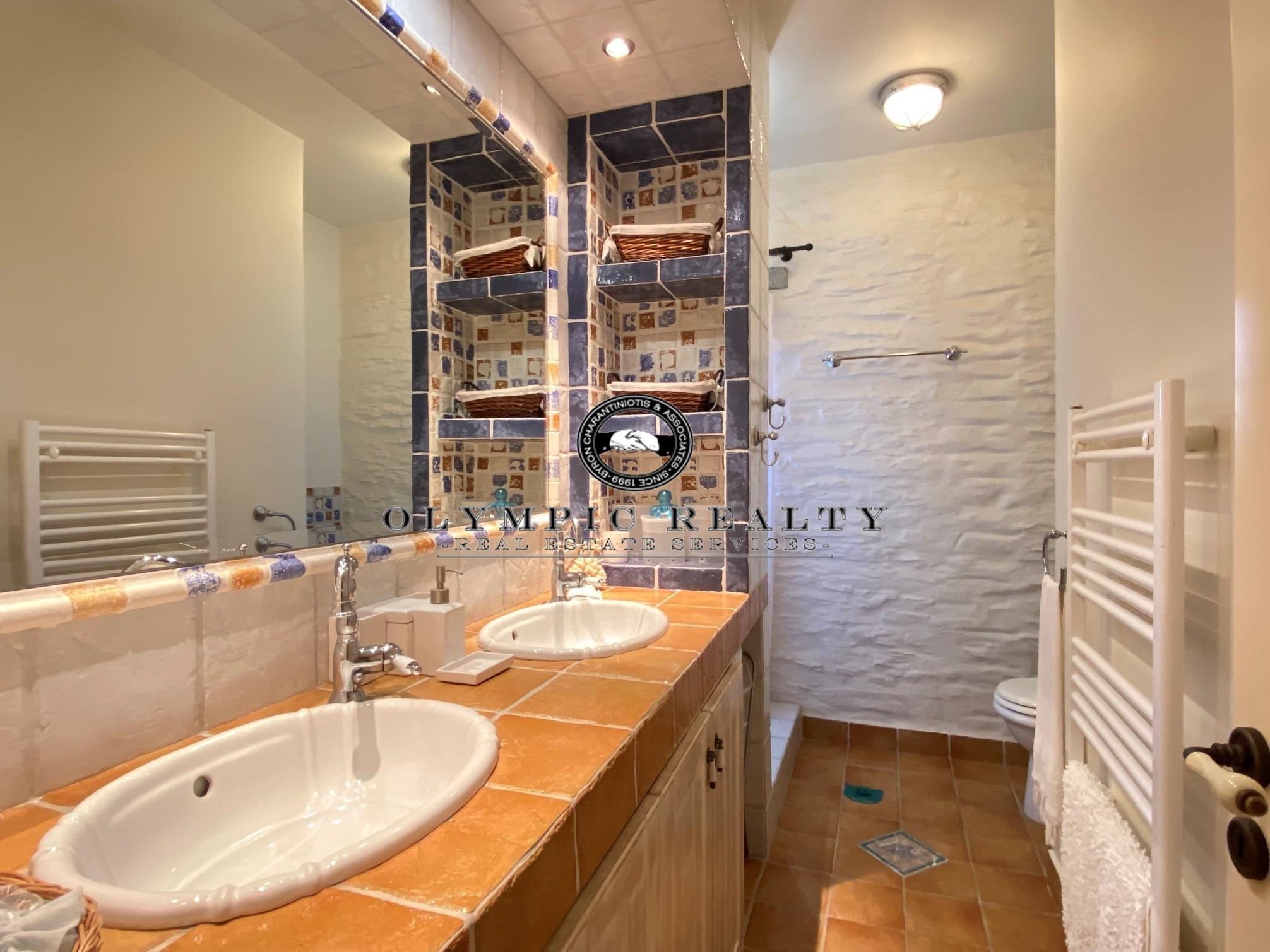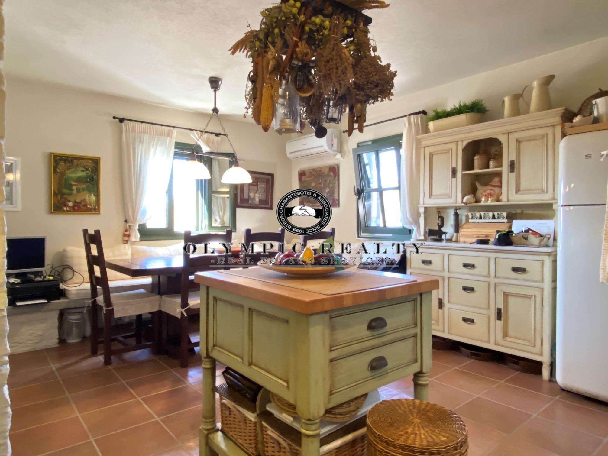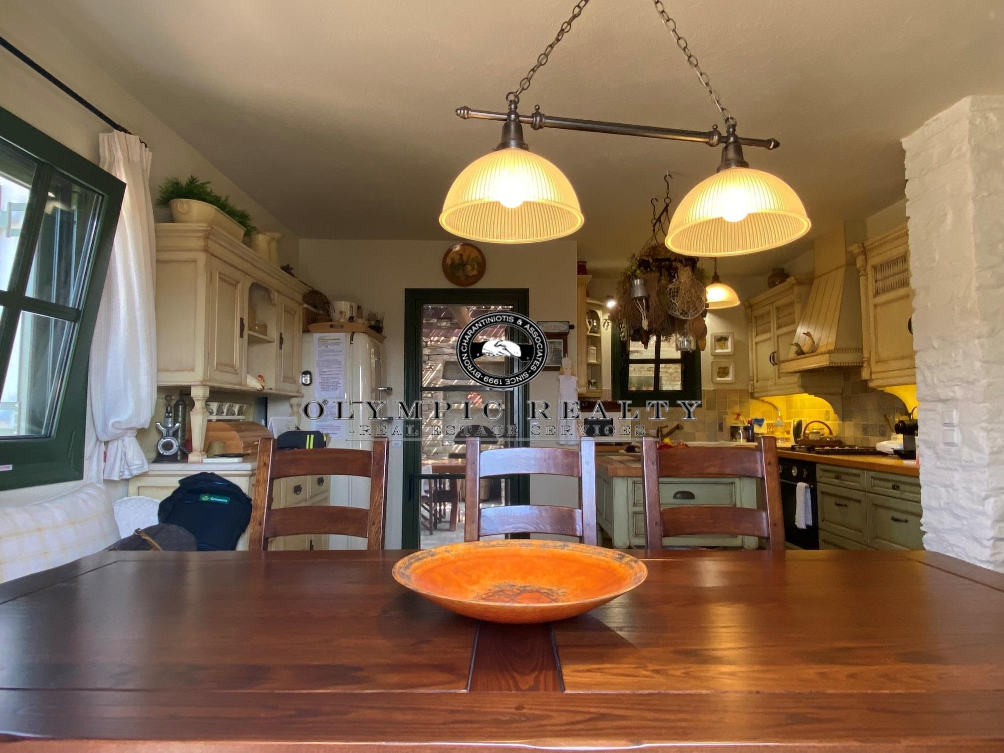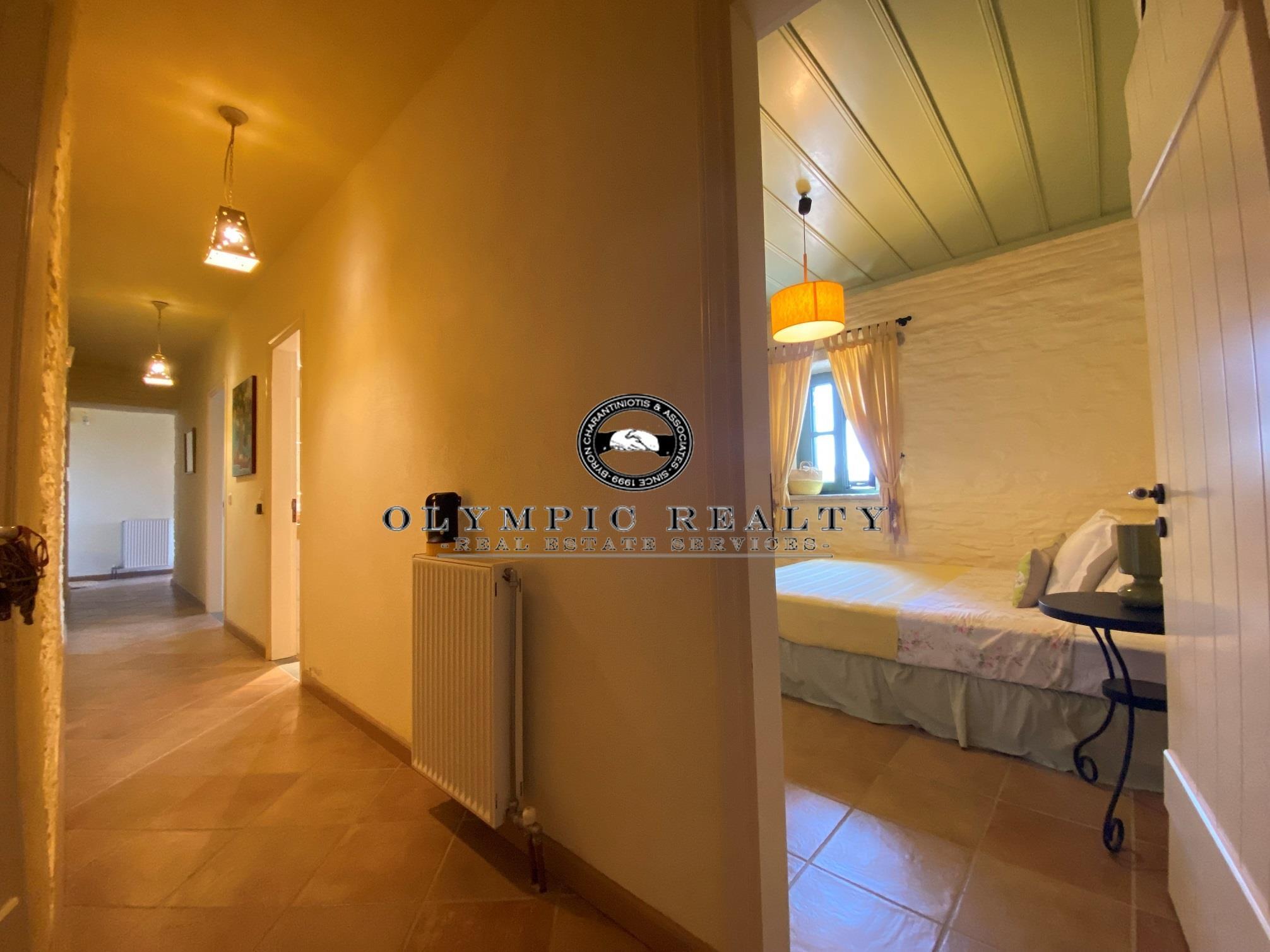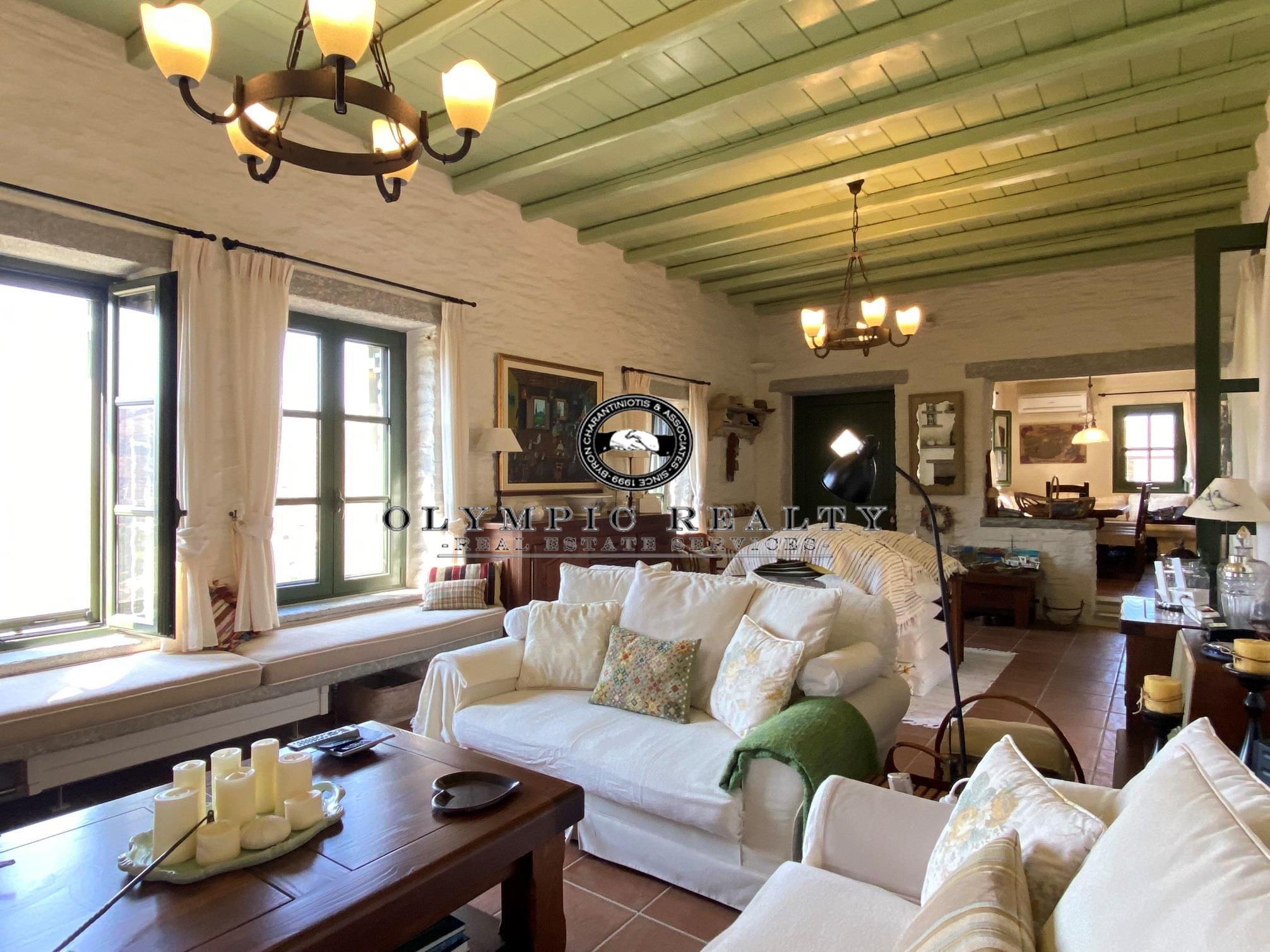 Η υπέροχη αυτή Βίλα έχει χτιστεί σε ένα απομονωμένο και αμφιθεατρικό σημείο του κόλπου, με γνώμονα την ιδιωτικότητα και την προσαρμογή της στο φυσικό τοπίο, σε ένα εξαιρετικά ήσυχο και ήρεμο περιβάλλον μακριά από την πολυκοσμία. Είναι μόλις 10 λεπτά από το λιμάνι και 7 λεπτά από το Βουρκάρι. Πρόκειται για μια κατοικία 4 εποχών ιδιαίτερης αρχιτεκτονικής, παραδοσιακού νησιώτικου ύφους (Τζιάς), συνολικής επιφάνειας 296 τ.μέτρων επί οικοπέδου 4.300 τ.μέτρων. Είναι απόλυτα εναρμονισμένη στο περιβάλλον όντας κατασκευασμένη με Τζιώτικη πέτρα (που συγκεκριμένα έχει εξαχθεί από το σημείο που χτίστηκε), ξύλο, τσιμεντοκονία, μάρμαρο και πέτρα από μοναδικούς τεχνίτες. Η αίσθηση που επικρατεί εντός της κατοικίας είναι η ειδυλλιακή ατμόσφαιρα και η θέα από τα διαμπερή ανοίγματα που είναι ειδικά σχεδιασμένα για να επεκτείνει τους άνετους χώρους της προς τον μεγάλο εξωτερικό χώρο και το χώρο της πισίνας που βρίσκεται ακριβώς μπροστά. Η κατοικία αναπτύσσεται σε 2 επίπεδα και διαθέτει μεγάλο living room – σαλόνι, ευρύχωρη και εργονομική κουζίνα, 4 υπνοδωμάτια εκ των οποίων το 1 master, και έχει έναν (1) ξενώνα ο οποίος ουσιαστικά είναι πλήρως αυτόνομος με δική του κουζίνα και λουτρό. Διαθέτει μεταξύ άλλων για τη λειτουργία της κατοικίας, κλιματισμό (air-condition) σε όλους τους χώρους, κεντρικό σύστημα θέρμανσης με καλοριφέρ, τζάκι, συναγερμό, κάμερες κλειστού κυκλώματος, κουφώματα αλουμινίου με διπλά τζάμια με παντζούρια και σίτες, εντοιχισμένες ηλεκτρικές συσκευές κα. Ο περιβάλλοντας χώρος διαθέτει πισίνα 75 τ.μέτρων, και οργανωμένο επαγγελματικό γήπεδο Τένις με υψηλή περίφραξη. Το οικόπεδο της κατοικίας έχει ομαλές κλίσεις στο οποίο έχουν δημιουργηθεί στάθμες για εύκολη πρόσβαση σε όλα του τα σημεία, είναι φυτεμένο με ελαιοδεντρα και θαμνοειδή δέντρα και καλλωπιστικά φυτά με αυτόματο πότισμα, ενώ είναι περιφραγμένο με πέτρινο τοίχο που διαθέτει ανοίγματα με πόρτες και γκαραζόπορτα για τις θέσεις στάθμευσης οχημάτων με σκεπαστό parking. Η κατοικία είναι άριστα συντηρημένη και έτοιμη προς χρήση. Παραδίδεται άμεσα. Κωδικός : 3276