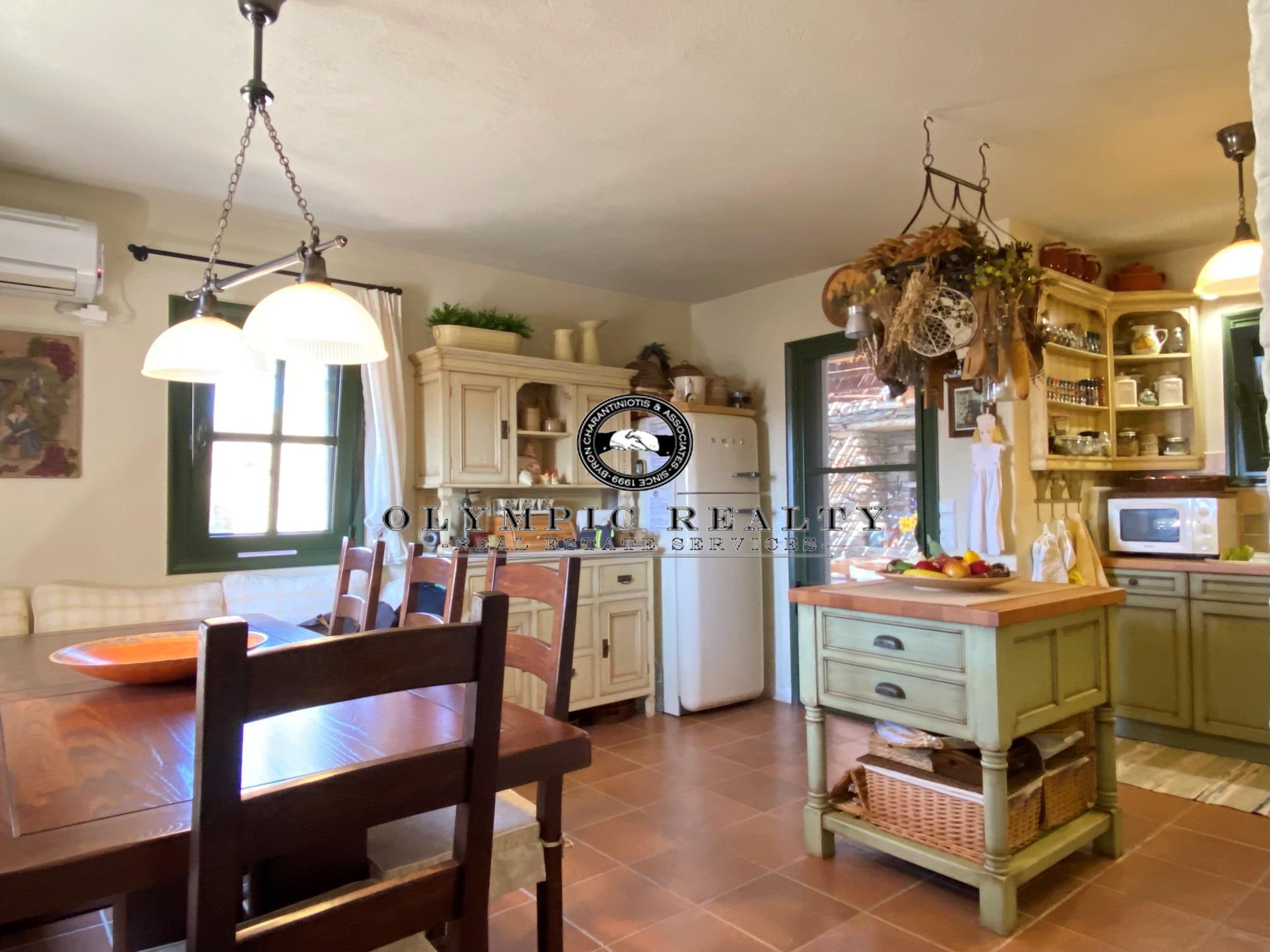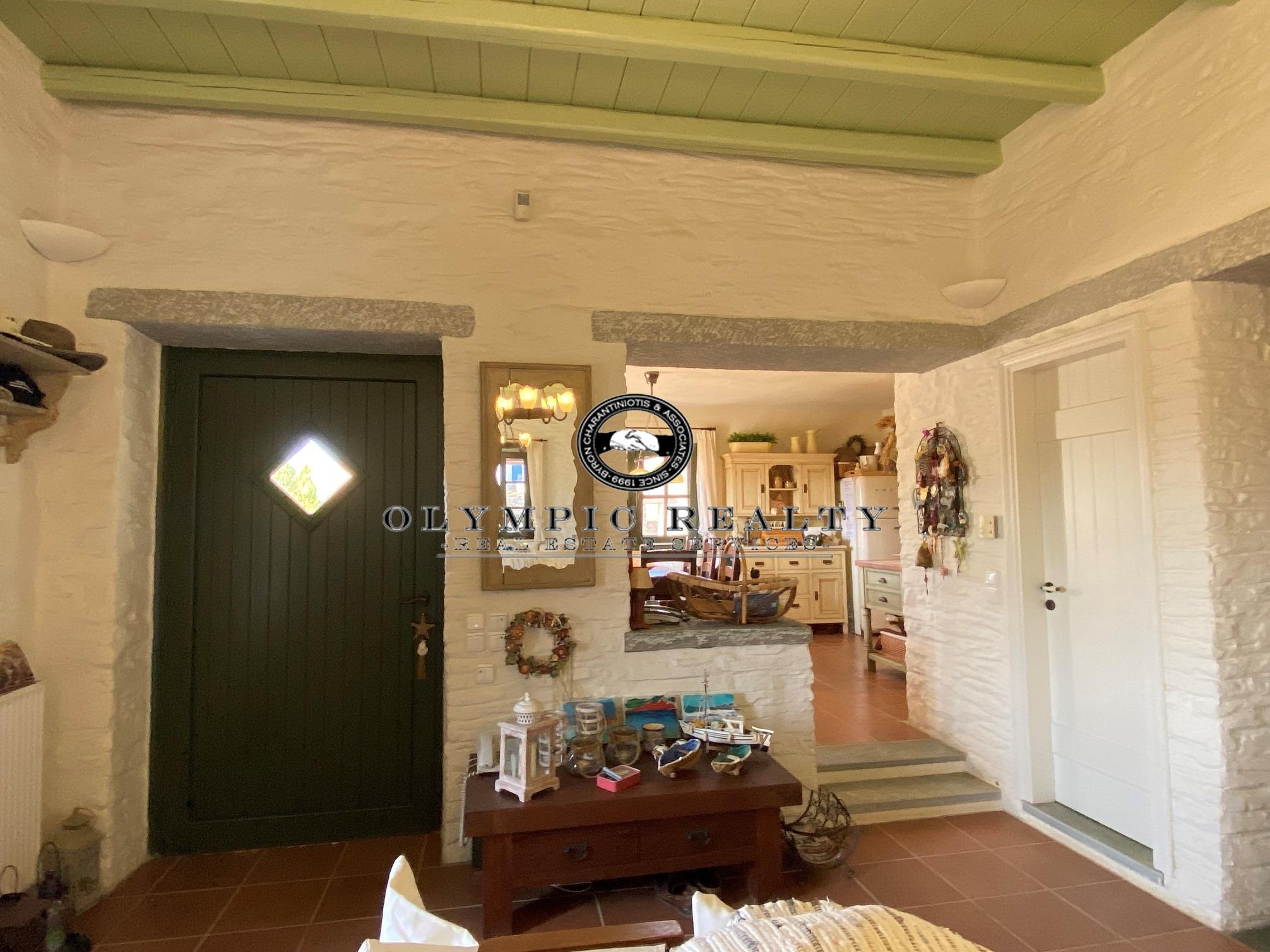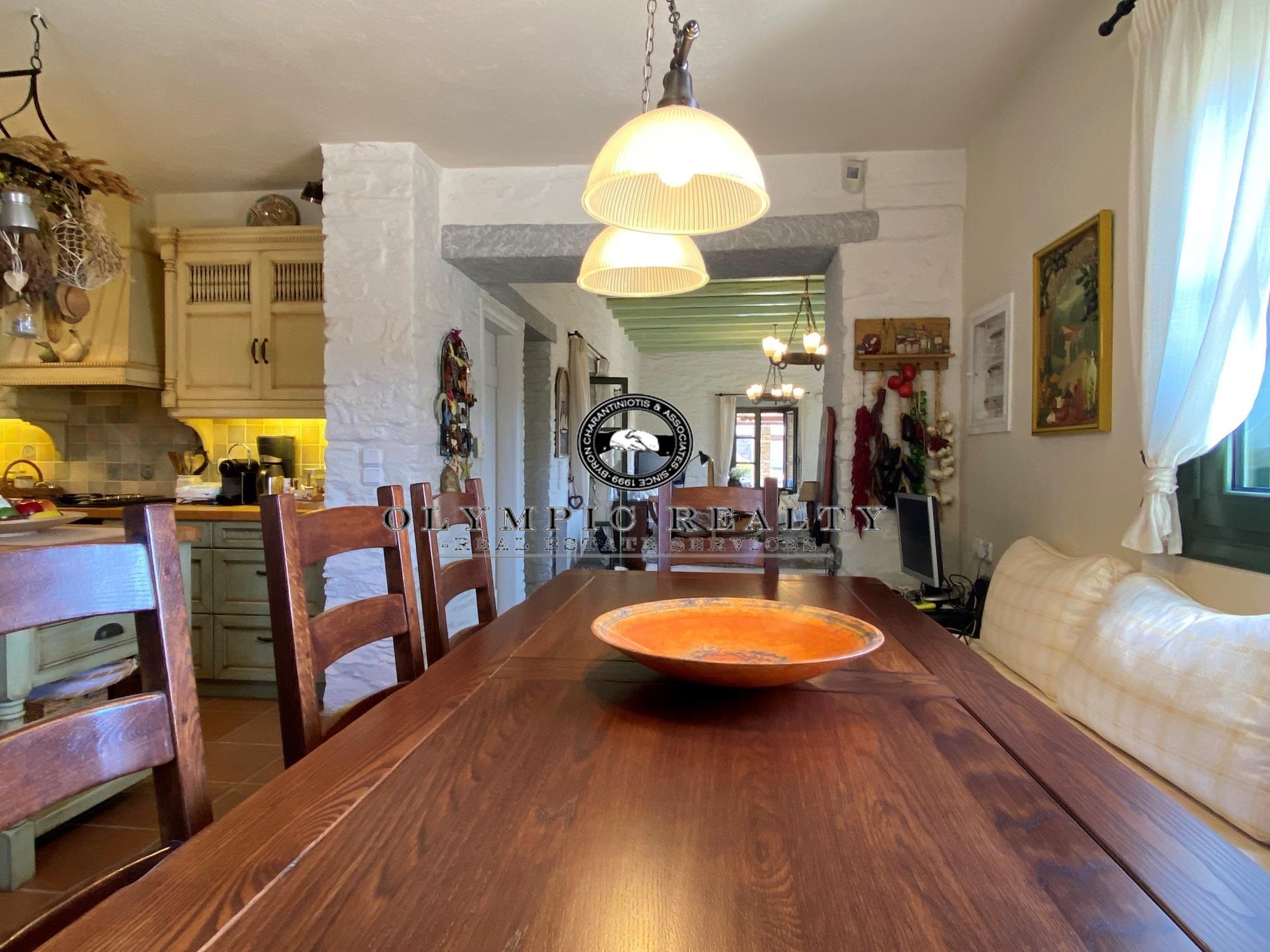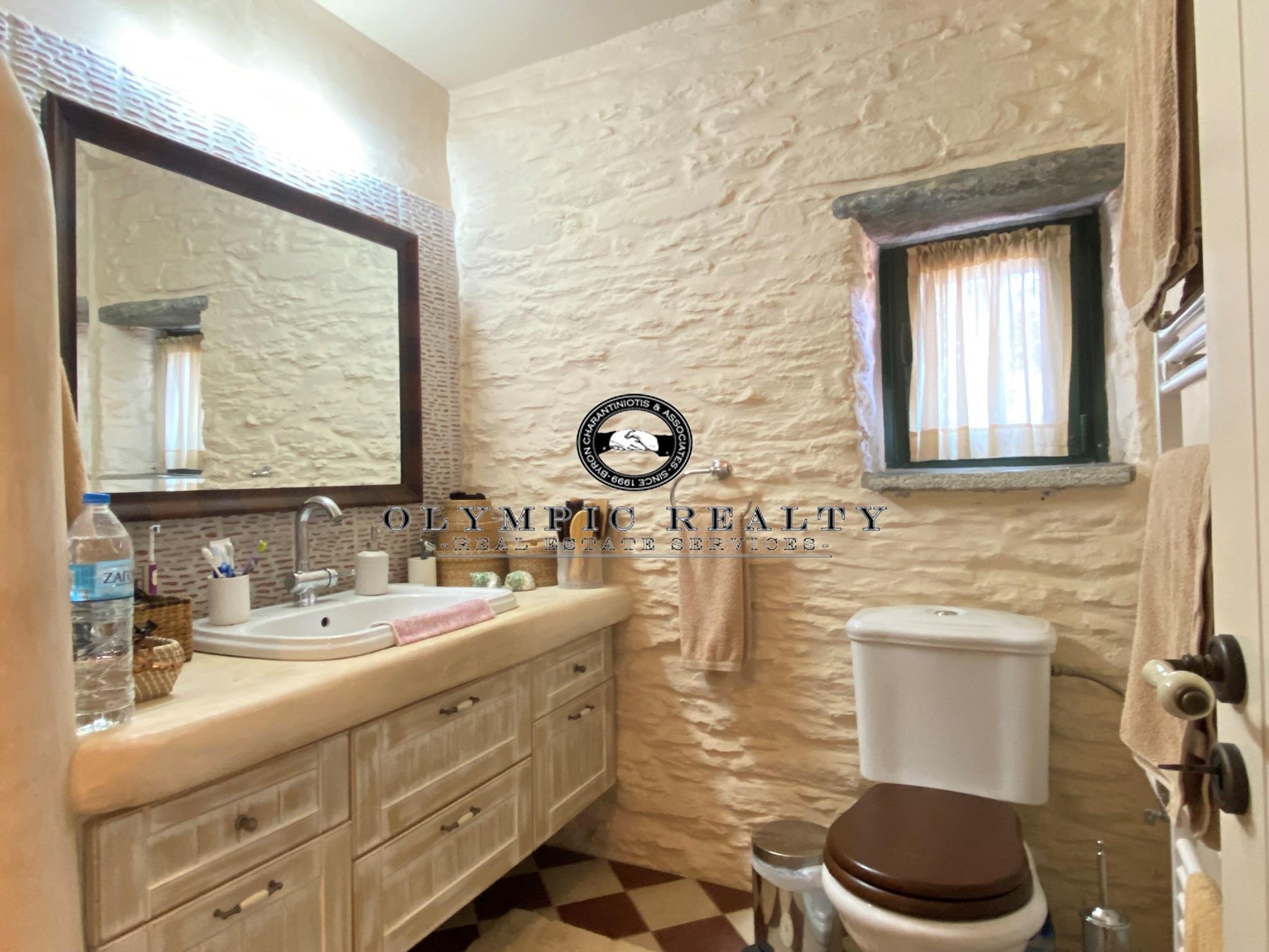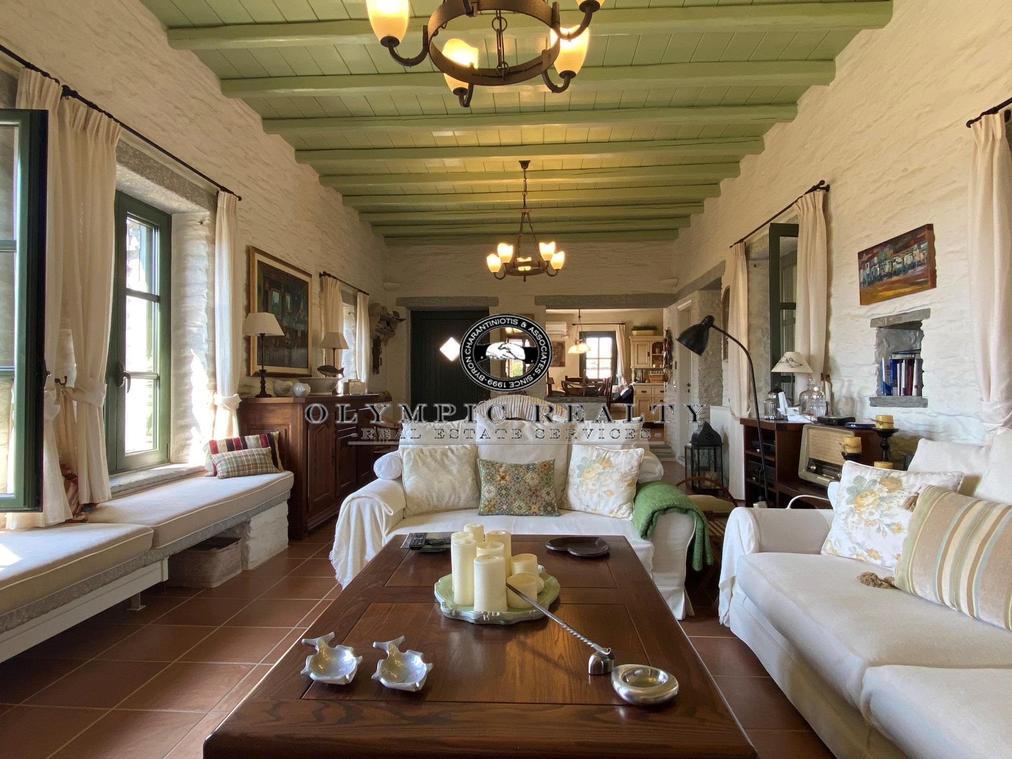 Η υπέροχη αυτή Βίλα έχει χτιστεί σε ένα απομονωμένο και αμφιθεατρικό σημείο του κόλπου, με γνώμονα την ιδιωτικότητα και την προσαρμογή της στο φυσικό τοπίο, σε ένα εξαιρετικά ήσυχο και ήρεμο περιβάλλον μακριά από την πολυκοσμία. Είναι μόλις 10 λεπτά από το λιμάνι και 7 λεπτά από το Βουρκάρι. Πρόκειται για μια κατοικία 4 εποχών ιδιαίτερης αρχιτεκτονικής, παραδοσιακού νησιώτικου ύφους (Τζιάς), συνολικής επιφάνειας 296 τ.μέτρων επί οικοπέδου 4.300 τ.μέτρων. Είναι απόλυτα εναρμονισμένη στο περιβάλλον όντας κατασκευασμένη με Τζιώτικη πέτρα (που συγκεκριμένα έχει εξαχθεί από το σημείο που χτίστηκε), ξύλο, τσιμεντοκονία, μάρμαρο και πέτρα από μοναδικούς τεχνίτες. Η αίσθηση που επικρατεί εντός της κατοικίας είναι η ειδυλλιακή ατμόσφαιρα και η θέα από τα διαμπερή ανοίγματα που είναι ειδικά σχεδιασμένα για να επεκτείνει τους άνετους χώρους της προς τον μεγάλο εξωτερικό χώρο και το χώρο της πισίνας που βρίσκεται ακριβώς μπροστά. Η κατοικία αναπτύσσεται σε 2 επίπεδα και διαθέτει μεγάλο living room – σαλόνι, ευρύχωρη και εργονομική κουζίνα, 4 υπνοδωμάτια εκ των οποίων το 1 master, και έχει έναν (1) ξενώνα ο οποίος ουσιαστικά είναι πλήρως αυτόνομος με δική του κουζίνα και λουτρό. Διαθέτει μεταξύ άλλων για τη λειτουργία της κατοικίας, κλιματισμό (air-condition) σε όλους τους χώρους, κεντρικό σύστημα θέρμανσης με καλοριφέρ, τζάκι, συναγερμό, κάμερες κλειστού κυκλώματος, κουφώματα αλουμινίου με διπλά τζάμια με παντζούρια και σίτες, εντοιχισμένες ηλεκτρικές συσκευές κα. Ο περιβάλλοντας χώρος διαθέτει πισίνα 75 τ.μέτρων, και οργανωμένο επαγγελματικό γήπεδο Τένις με υψηλή περίφραξη. Το οικόπεδο της κατοικίας έχει ομαλές κλίσεις στο οποίο έχουν δημιουργηθεί στάθμες για εύκολη πρόσβαση σε όλα του τα σημεία, είναι φυτεμένο με ελαιοδεντρα και θαμνοειδή δέντρα και καλλωπιστικά φυτά με αυτόματο πότισμα, ενώ είναι περιφραγμένο με πέτρινο τοίχο που διαθέτει ανοίγματα με πόρτες και γκαραζόπορτα για τις θέσεις στάθμευσης οχημάτων με σκεπαστό parking. Η κατοικία είναι άριστα συντηρημένη και έτοιμη προς χρήση. Παραδίδεται άμεσα. Κωδικός : 3276